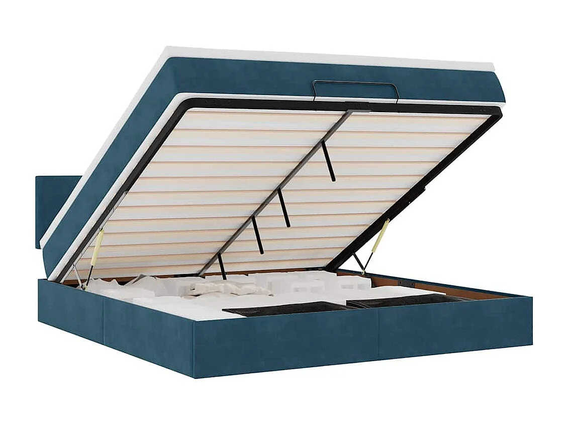 Cadre de lit ottoman avec matelas bleu foncé 160x200 cm velours