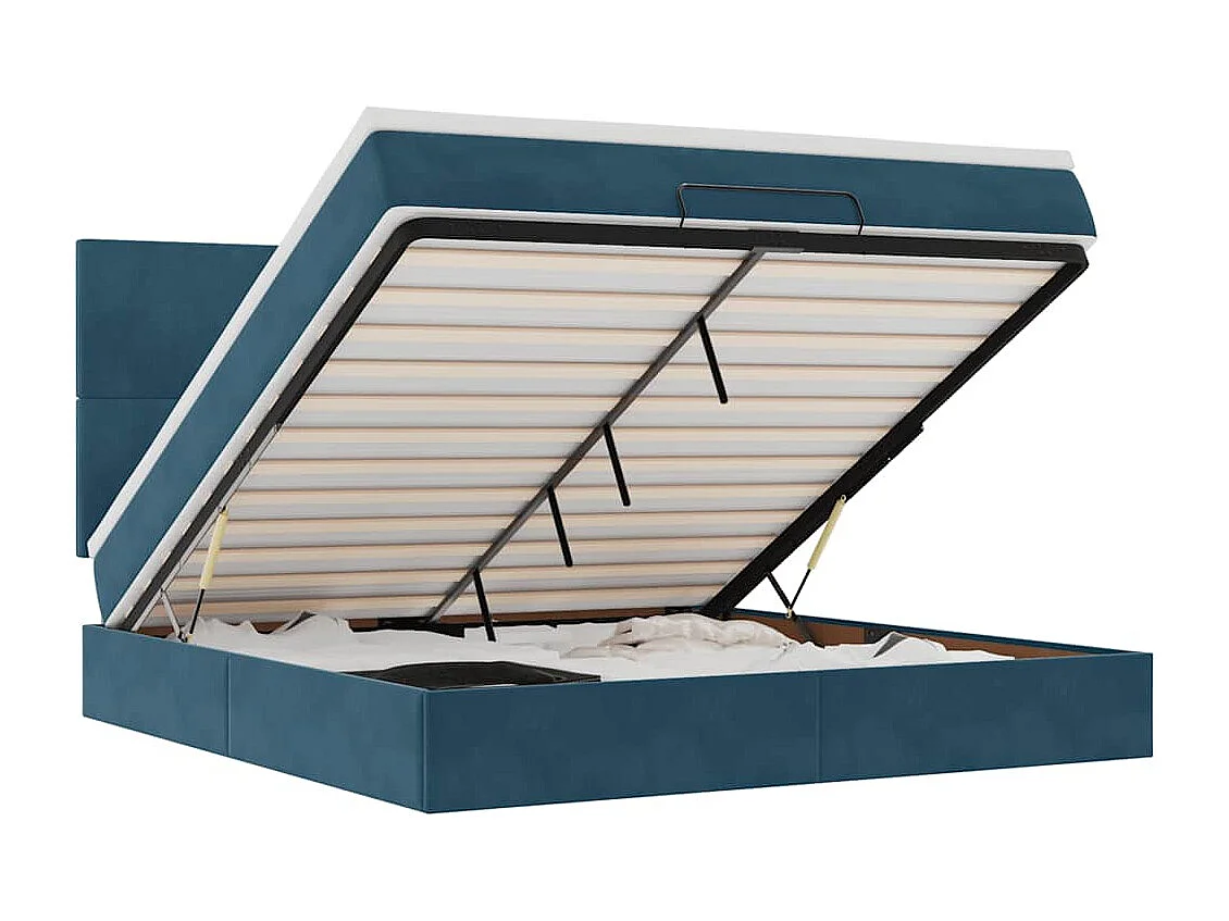 Cadre de lit ottoman avec matelas bleu foncé 160x200 cm velours