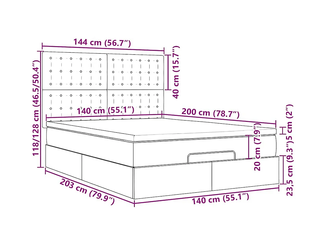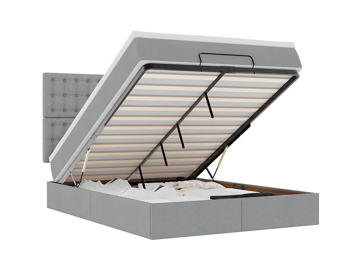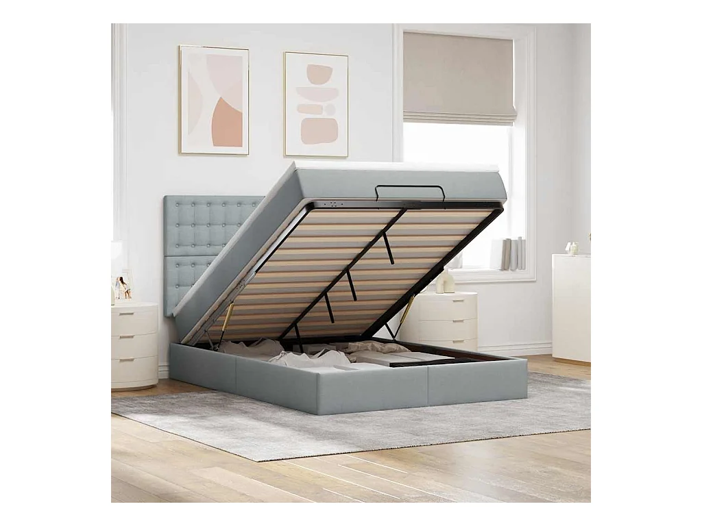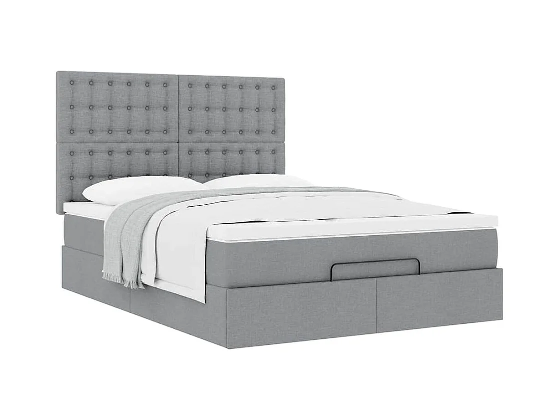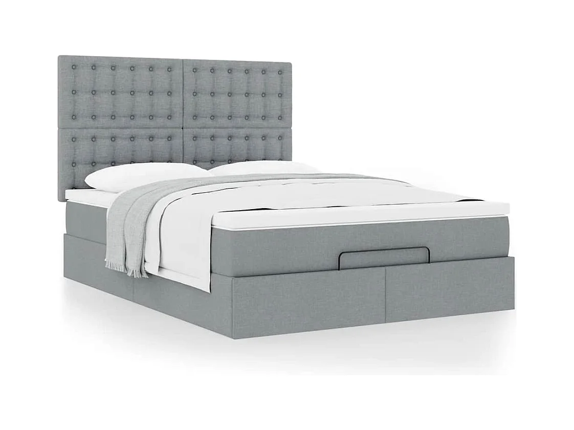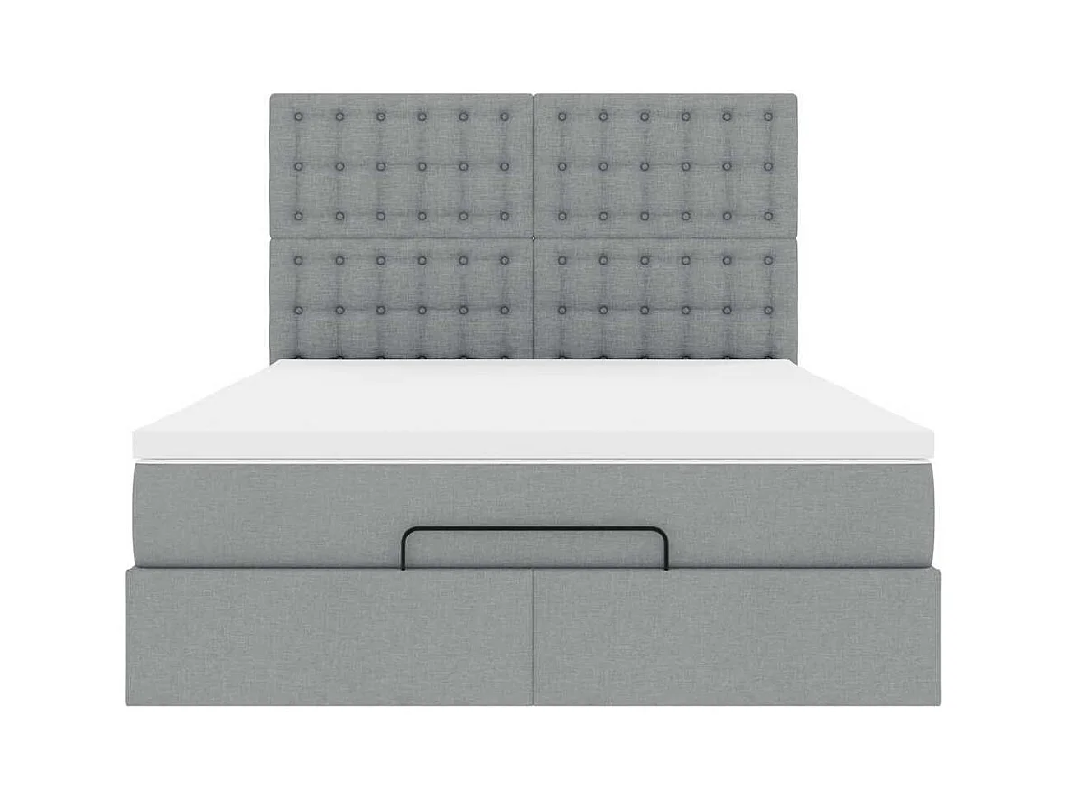 Cadre de lit ottoman et matelas gris clair 140x200 cm tissu