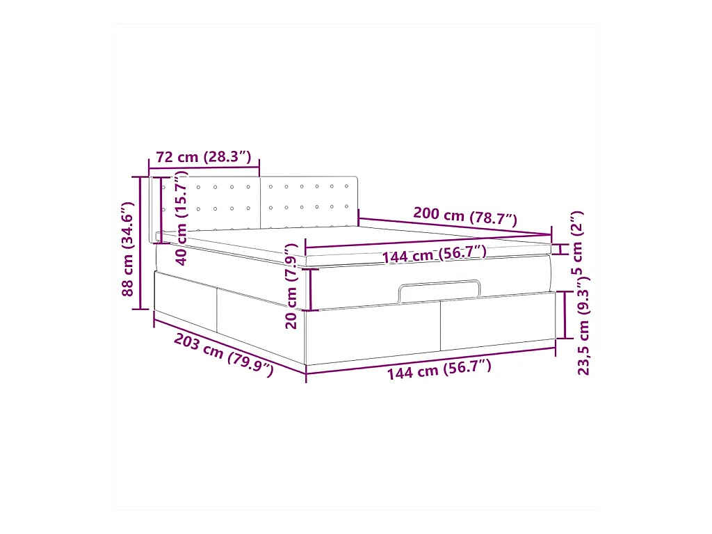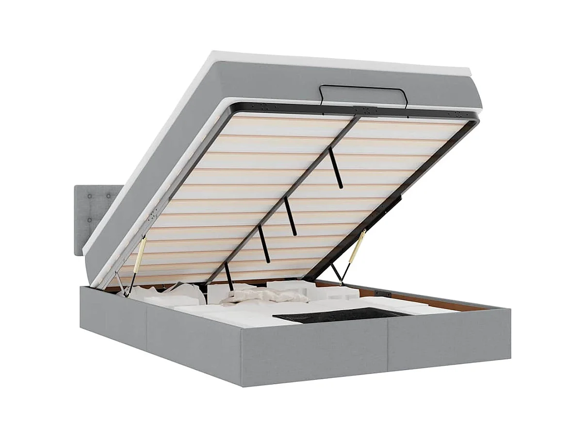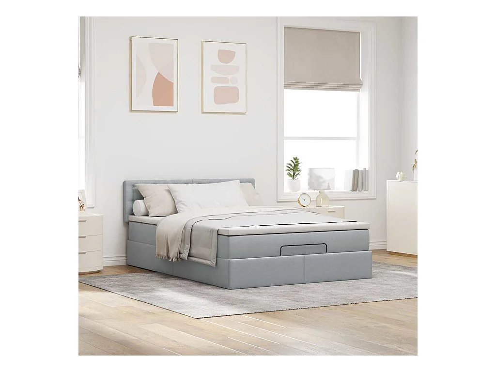Cadre de lit ottoman et matelas gris clair 140x200 cm tissu