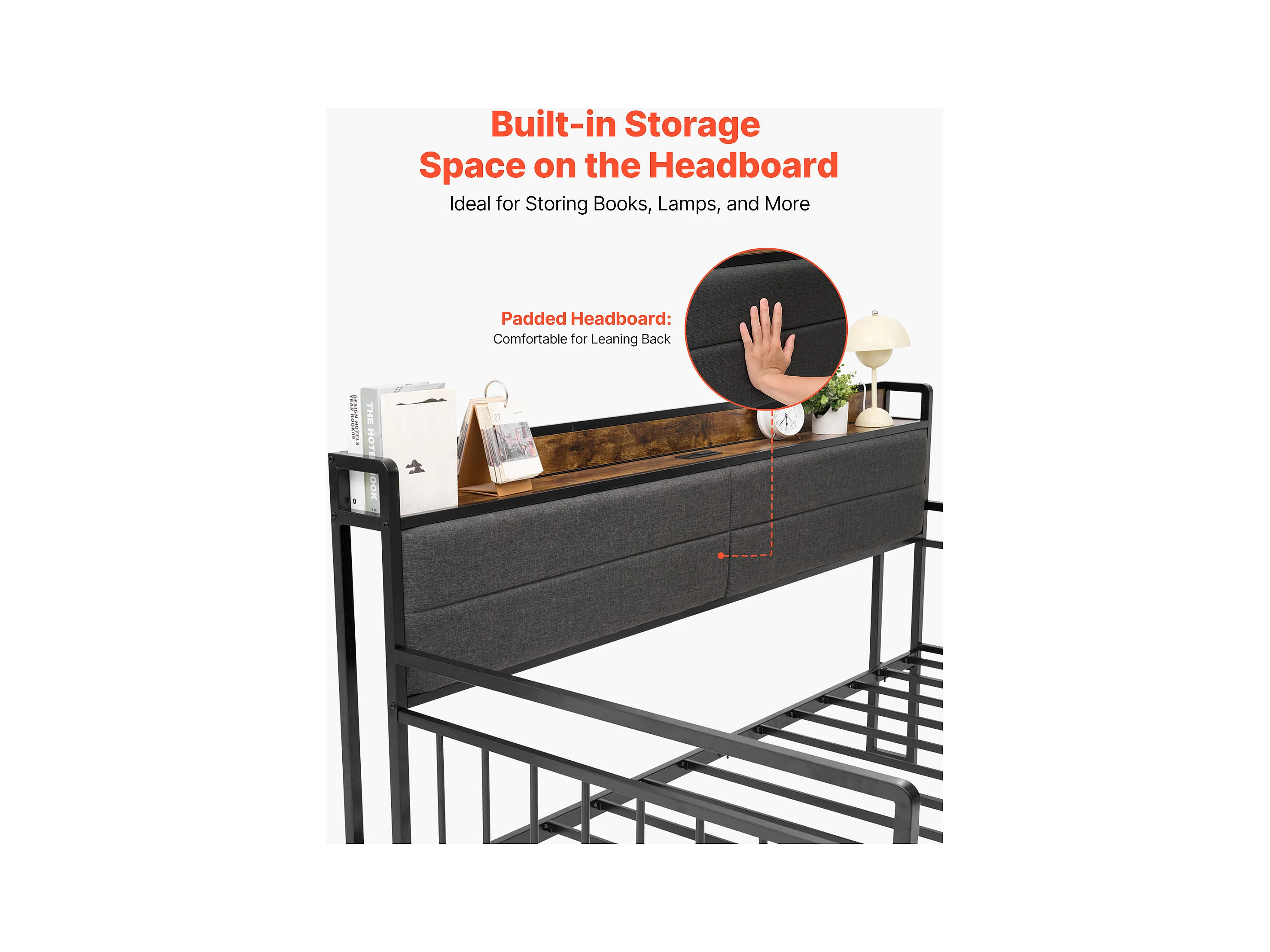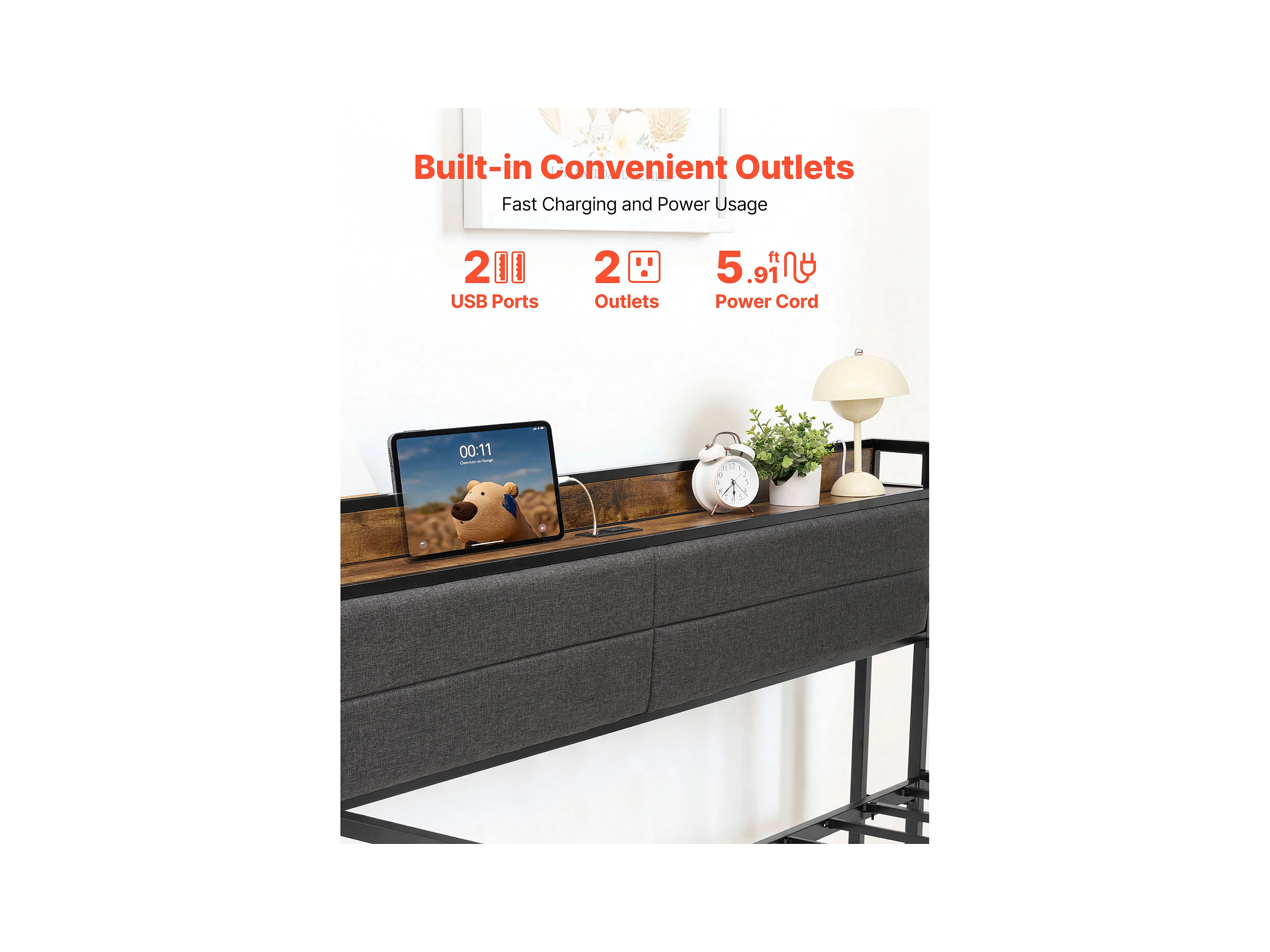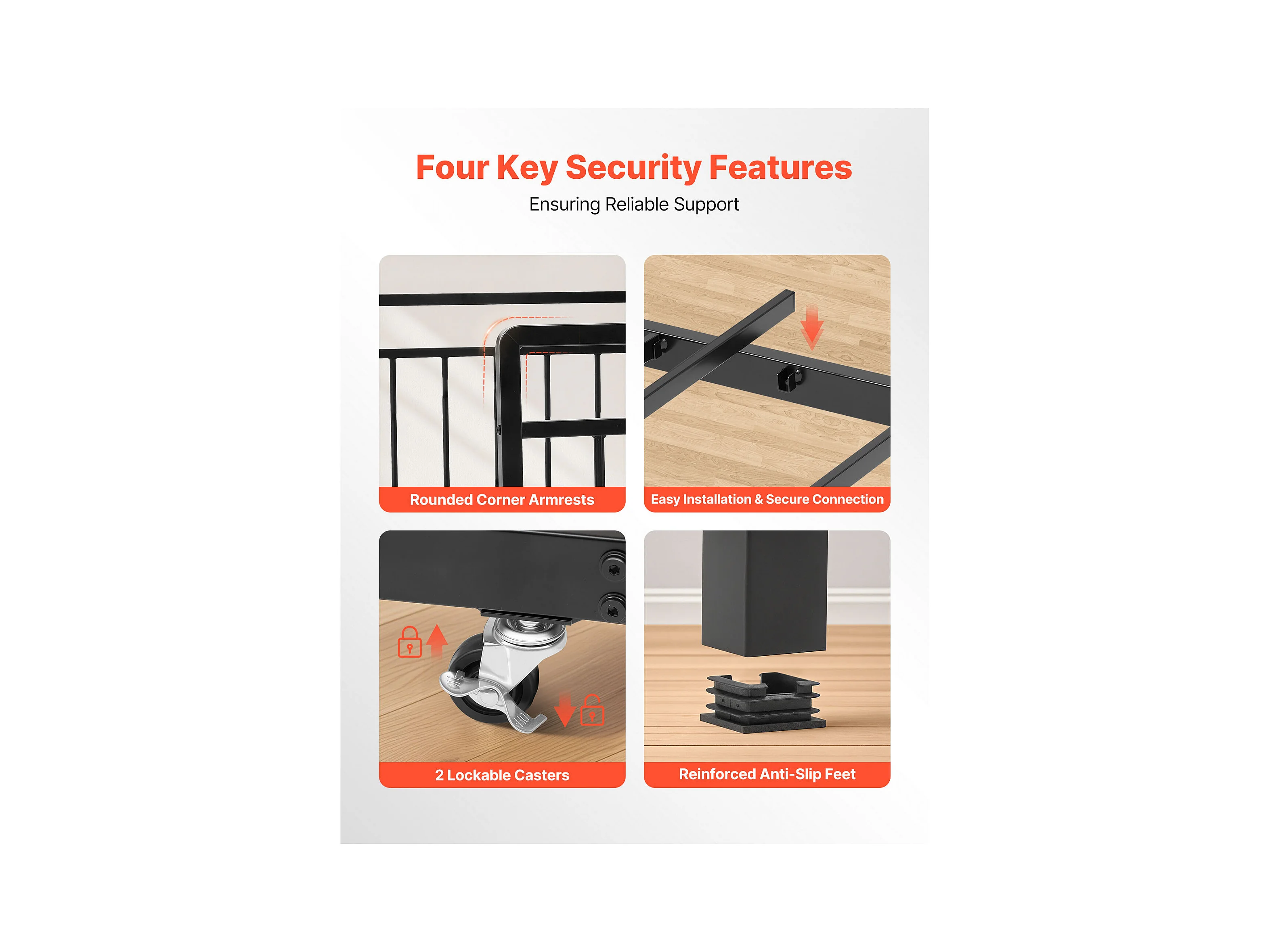 Cadre de Lit SucceBuy de Jour Jumeau en Métal Robuste, Lit Gigogne Jumeau sans Matelas, avec Roues, Station de Charge et Support à Lattes Métalliques
