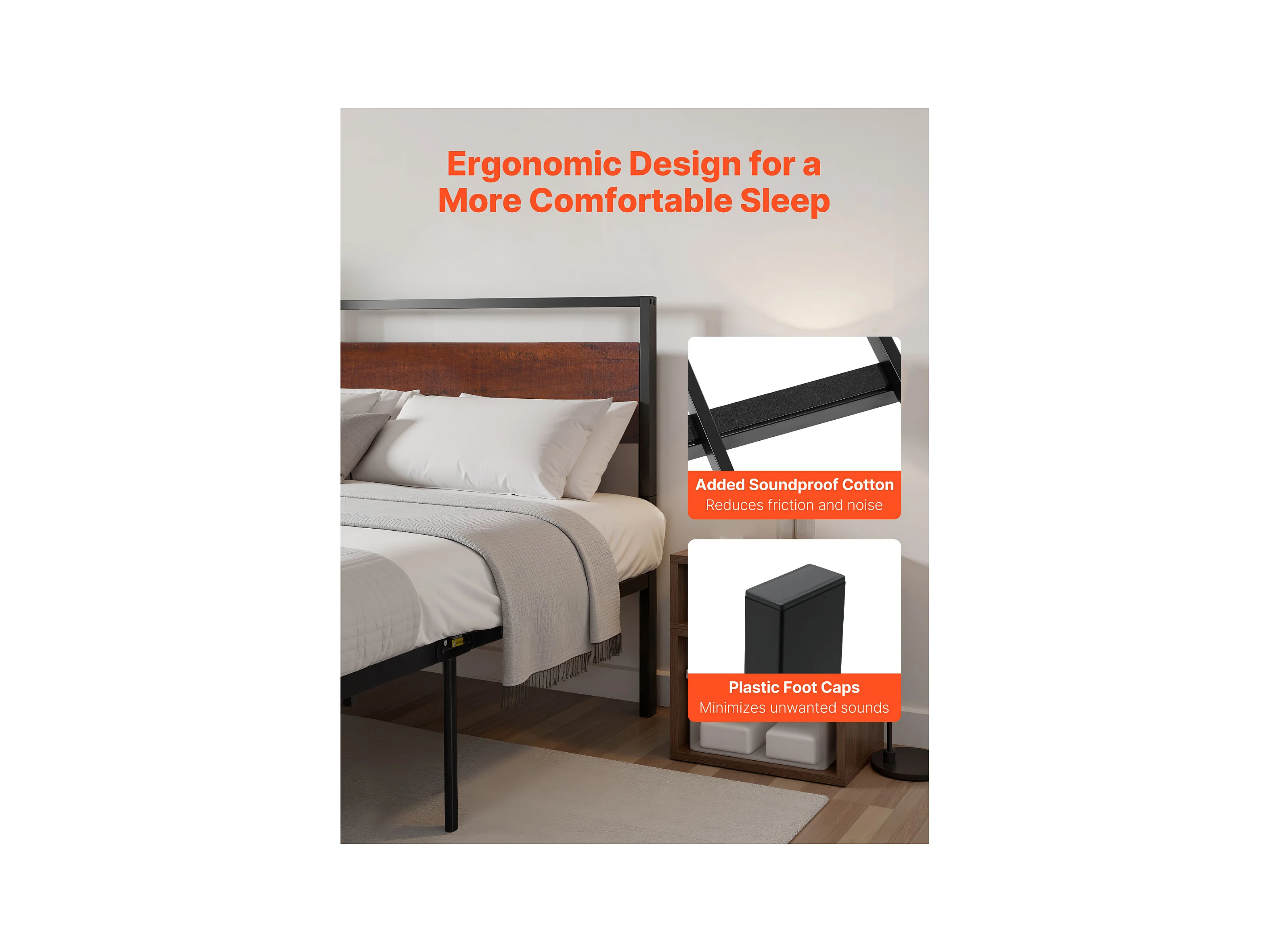Cadre de Lit SucceBuy Double Full Size, Sommier Plateforme en Métal Noir, Espace de 31 cm, avec Tête et Pied en Bois Brun Rétro, Grand Espace de Rangement
