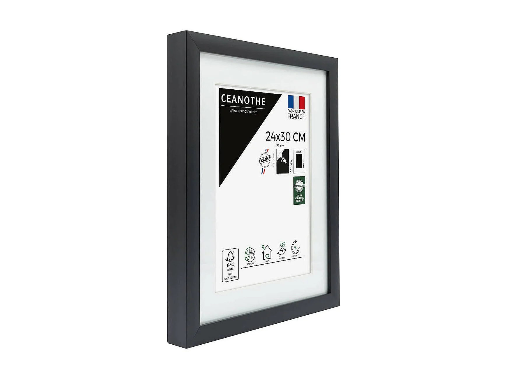 Cadre photo 24x30 cm Milan noir avec passe-partout 18x24 cm