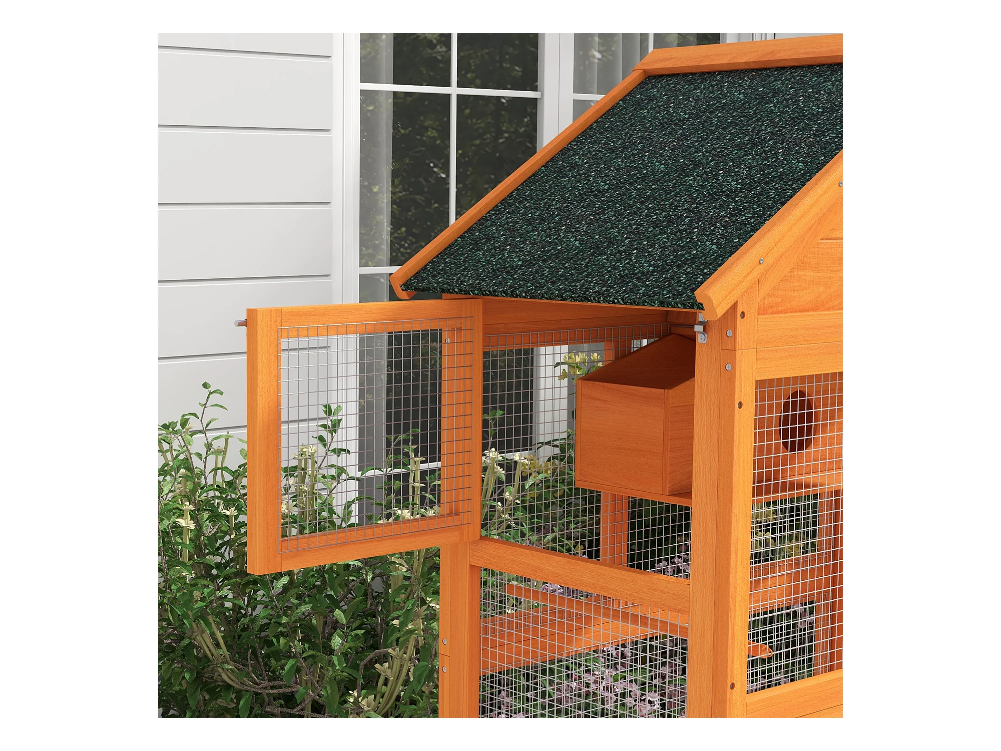 Cage à oiseaux volière grande taille 2 portes trappe toit asphalte tiroir amovible bois pré-huilé