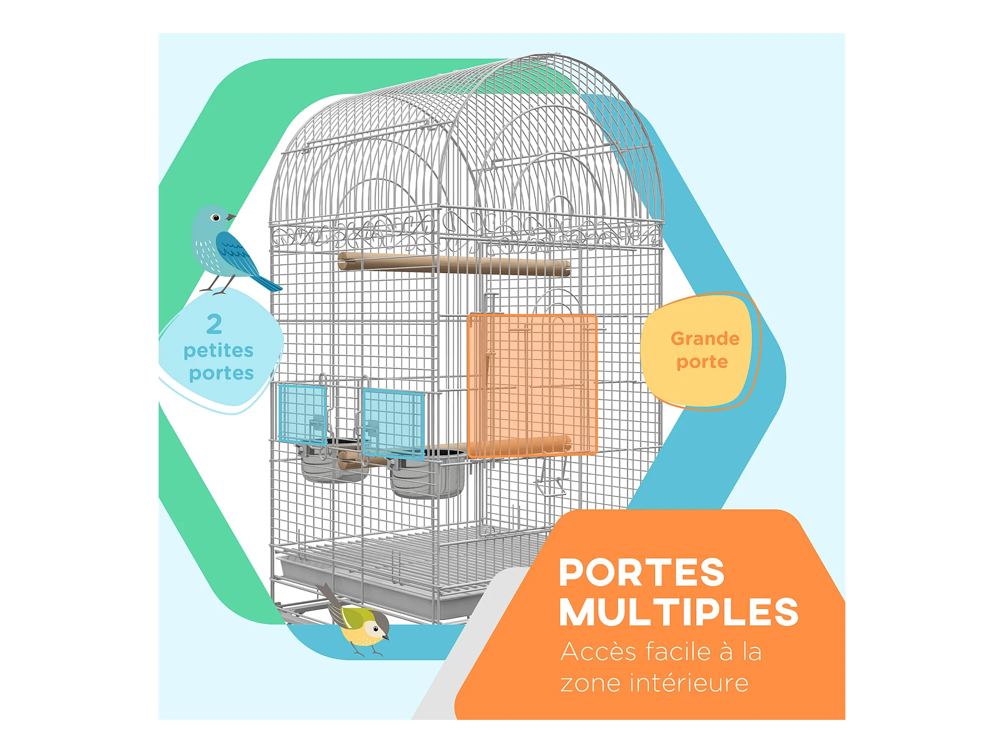 Cage à oiseaux volière avec portes perchoirs - 61 x 36,5 x 98 cm - blanc