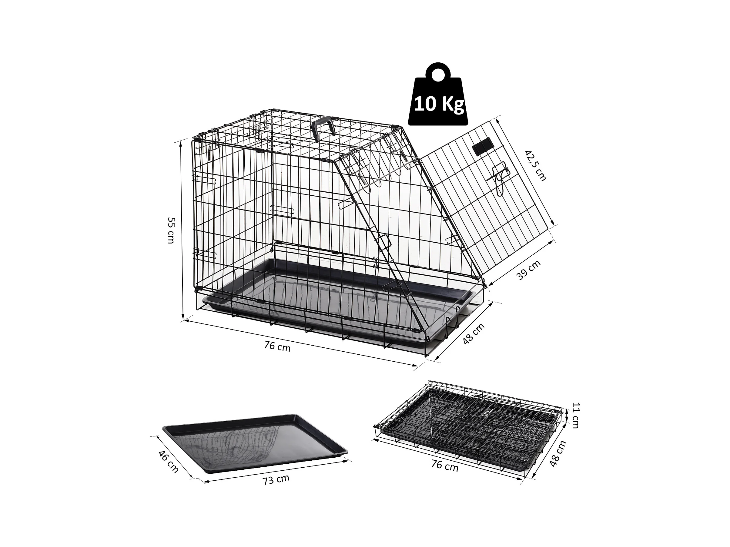 Cage de transport pour chien taille L dim. 76L x 48l x 55H cm métal noir