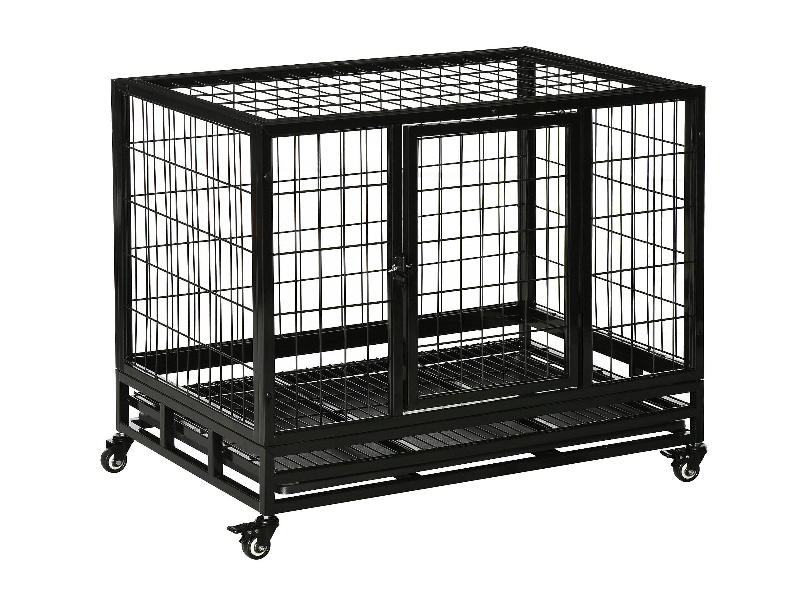 Cage pour chien animaux cage de transport sur roulettes 2 portes noir