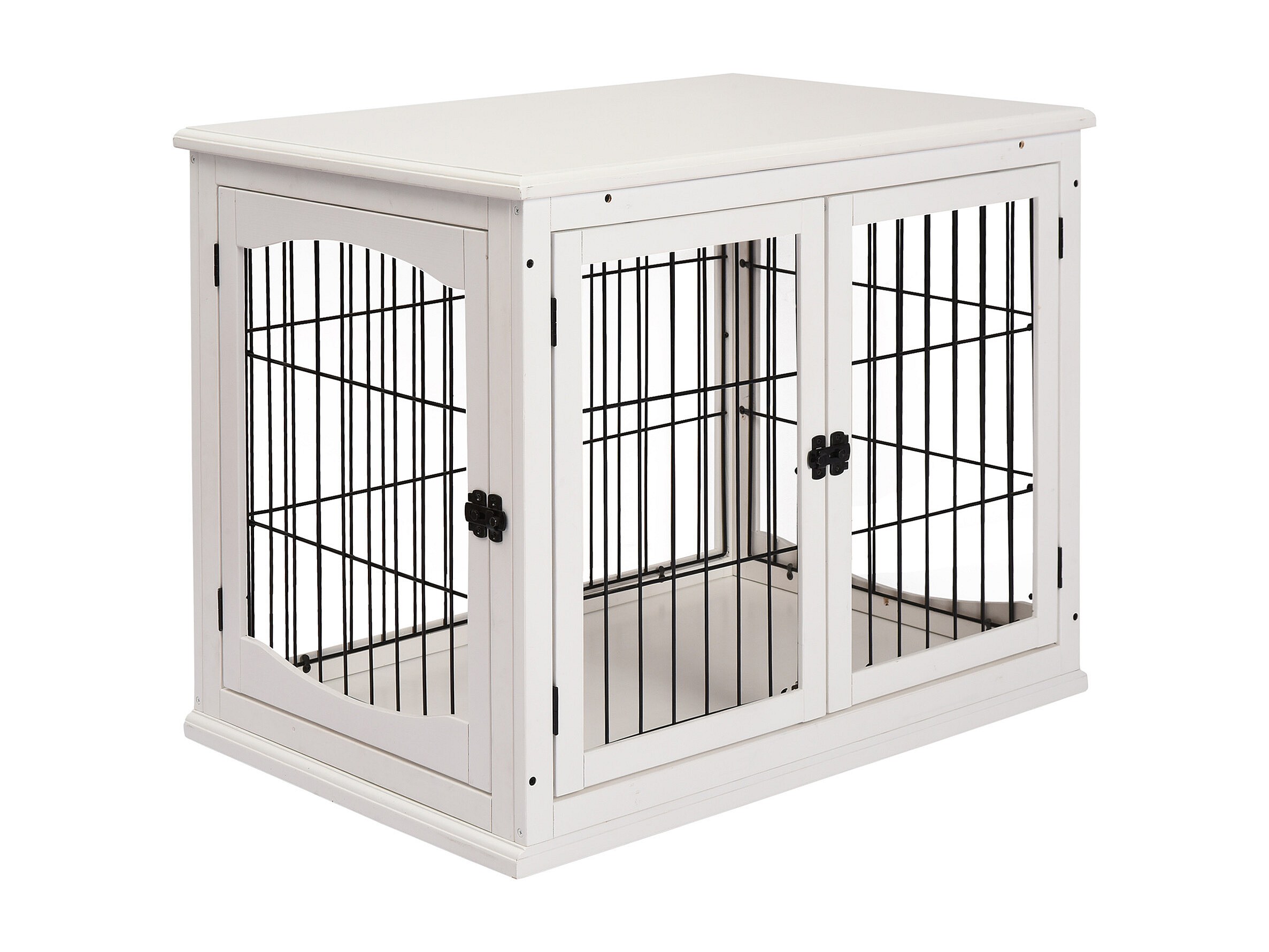 Cage pour chien animaux cage en bois MDF classe E1 3 portes verrouillables max. 30 Kg dim. 81L x 58l x 66H cm blanc noir