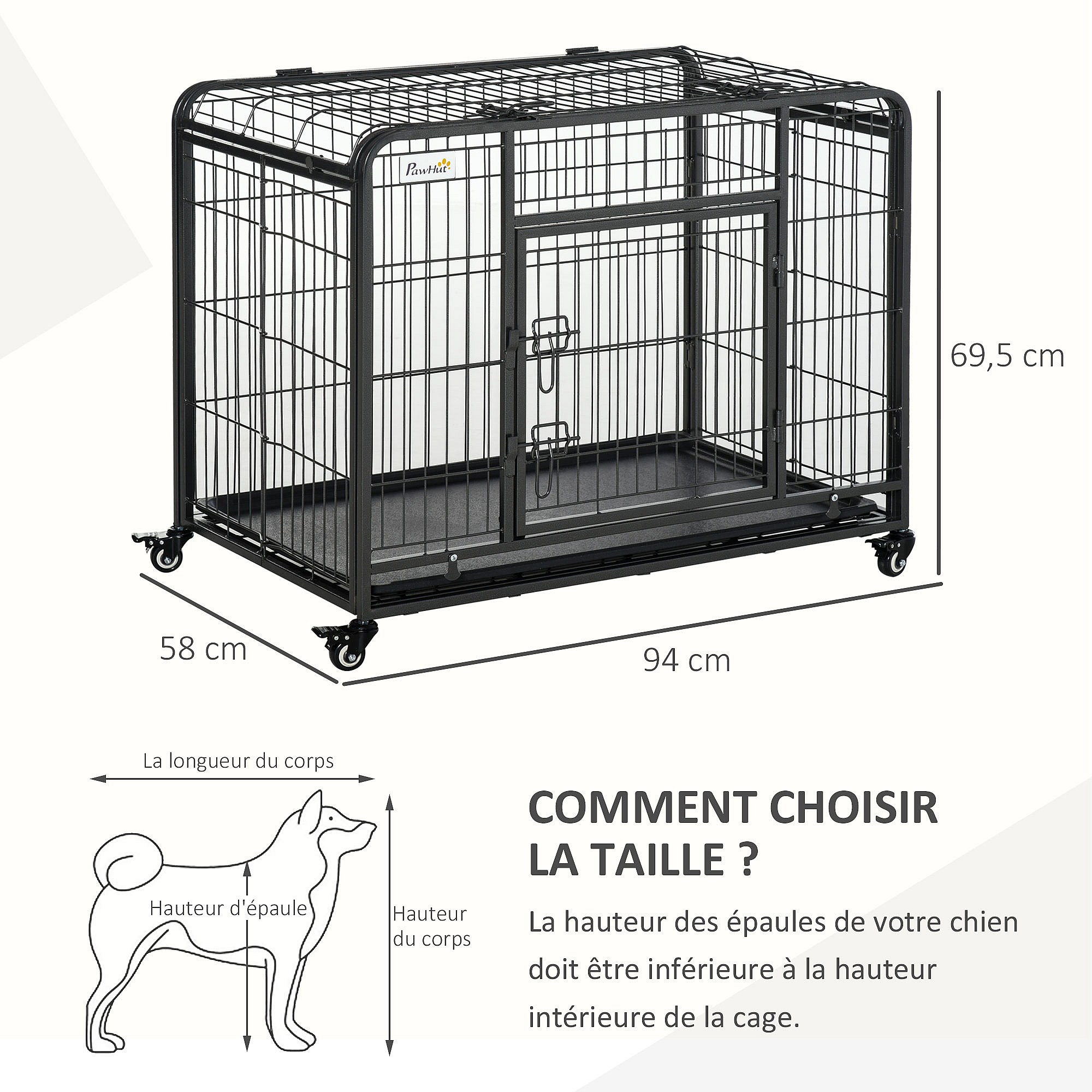 Cage pour chien pliable cage de transport sur roulettes 2 portes verrouillables plateau amovible dim. 94L x 58l x 69H cm métal gris noir