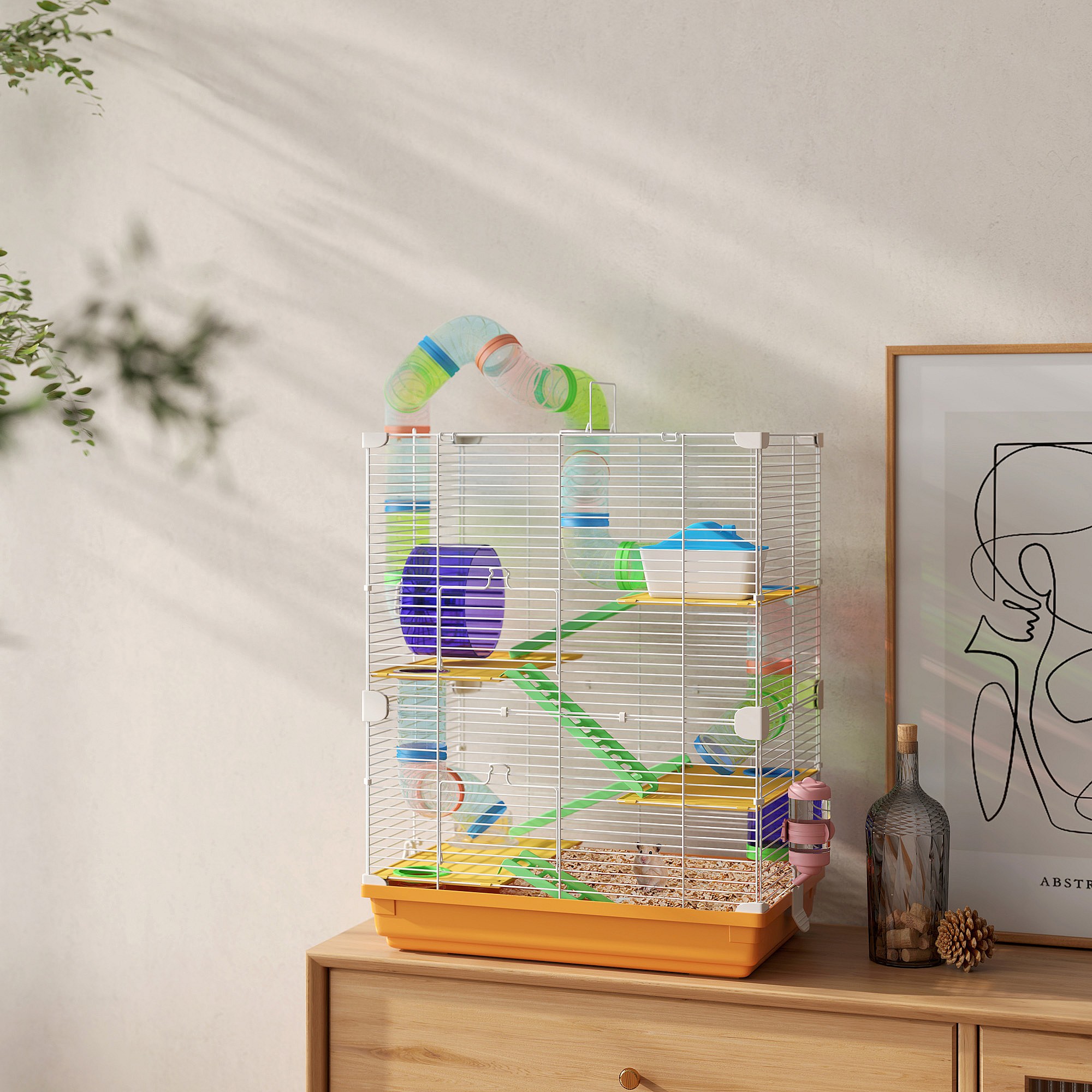 Cage pour hamster souris rongeur 4 étages avec tunnels mangeoire roue maison échelles dim. 46L x 30l x 58H cm orange