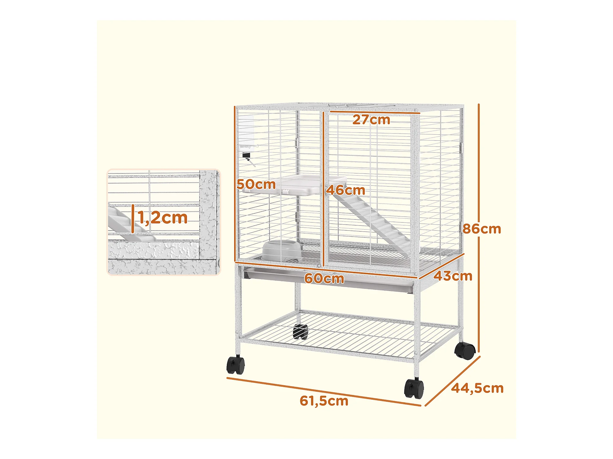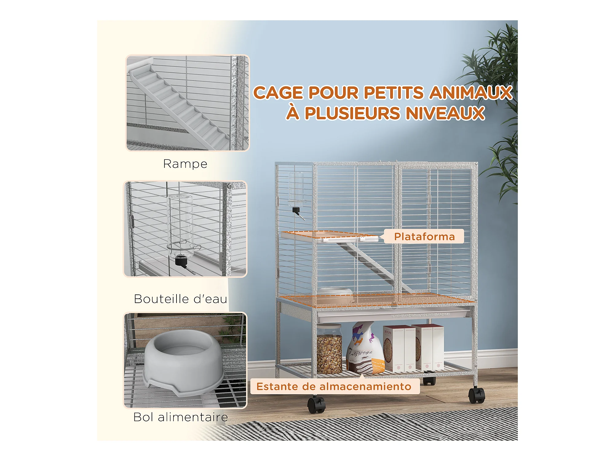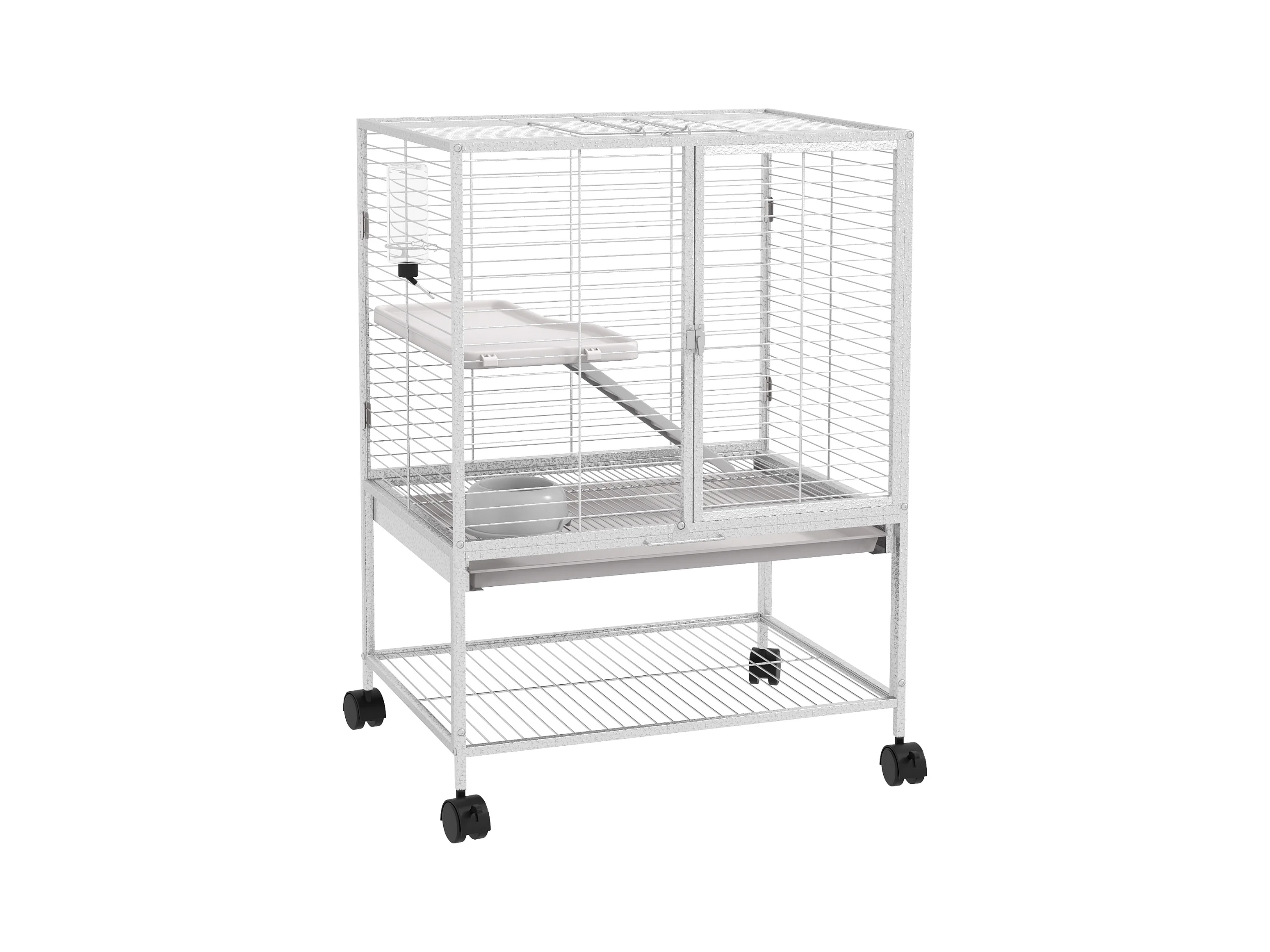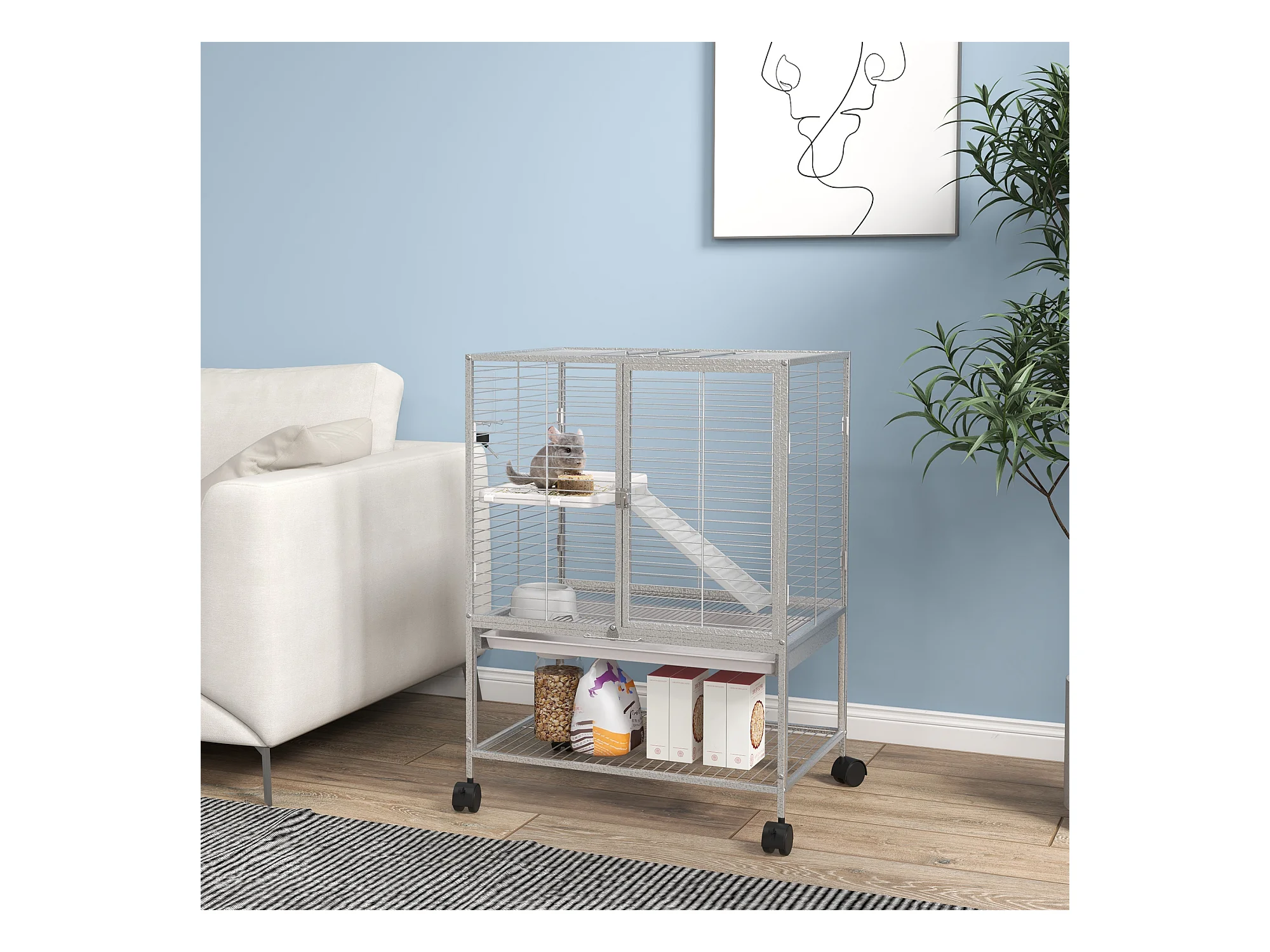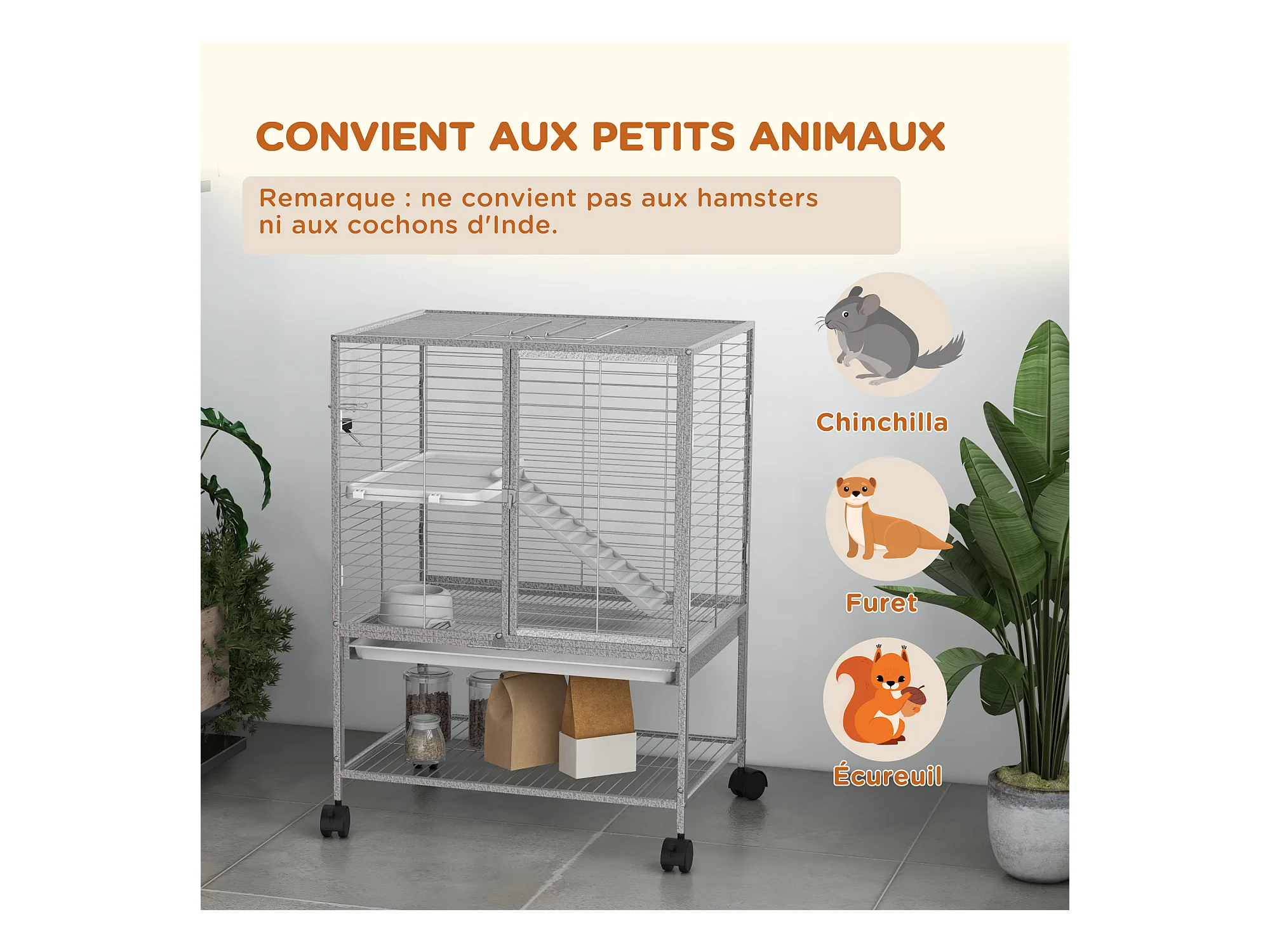 Cage pour rongeurs furet chinchilla plateforme rampe 2 portes biberon gamelle plateau étagère acier gris clair