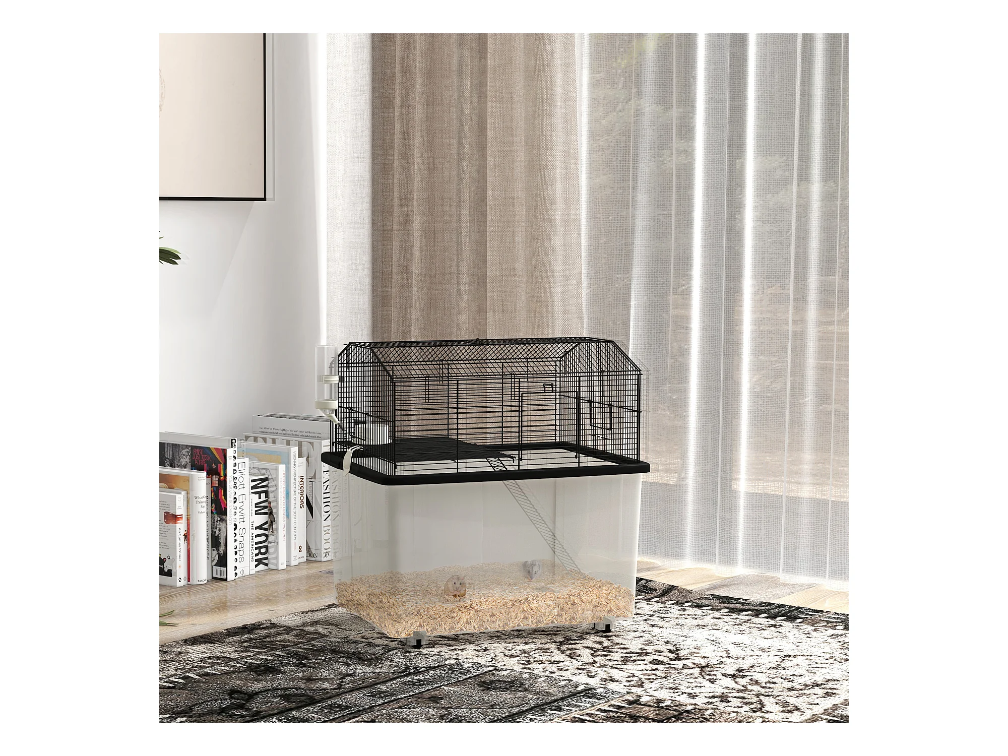PawHut Cage pour Petits Animaux Roulante 3 Rampes 3 Plates-formes Plat et Bouteille d'Eau Bac Inférieur Amovible Acier PP Noire