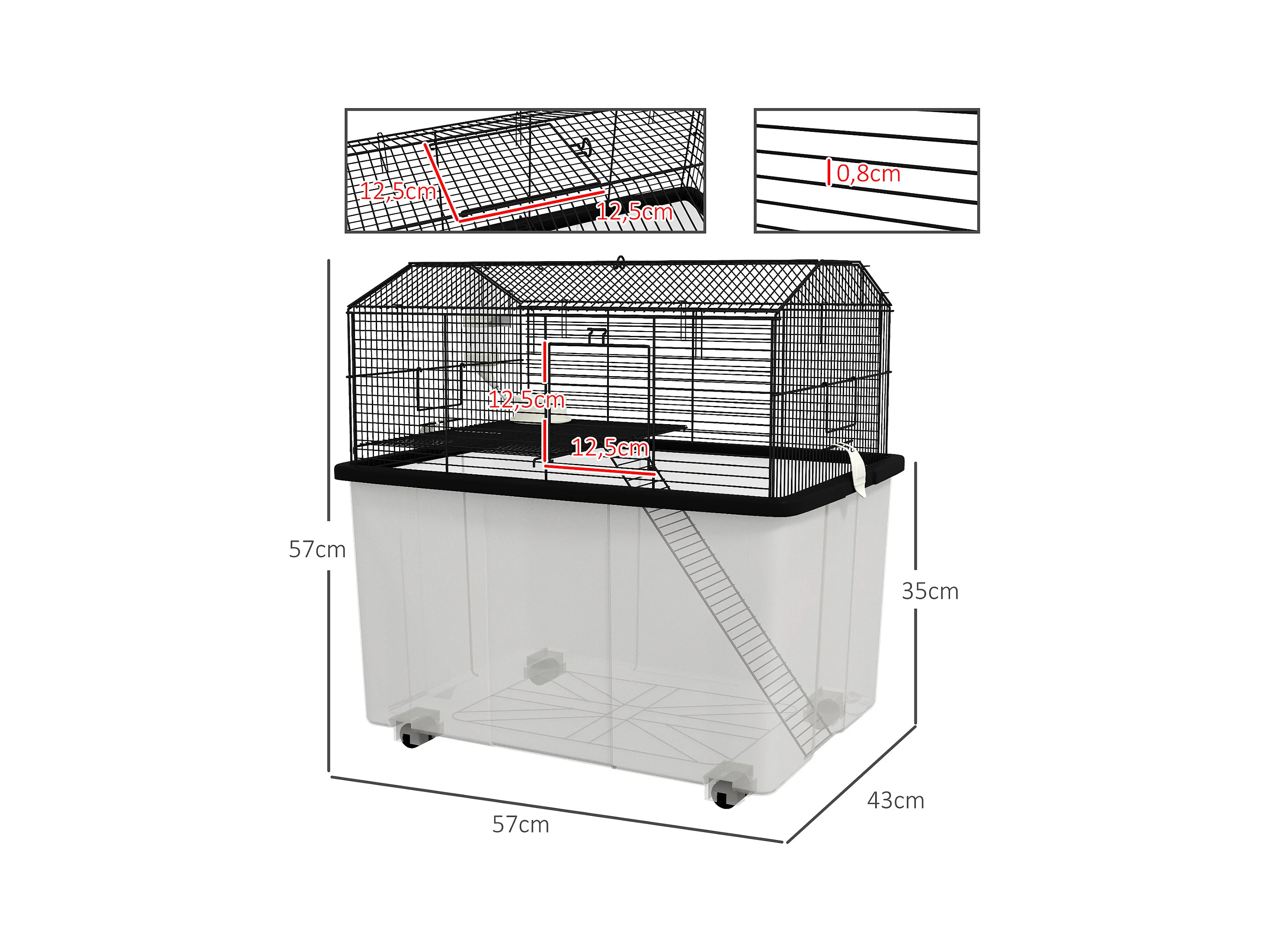 Cage rongeur hamster 2 étages - roulettes, plateforme, échelle, accessoires - PP transparent acier noir
