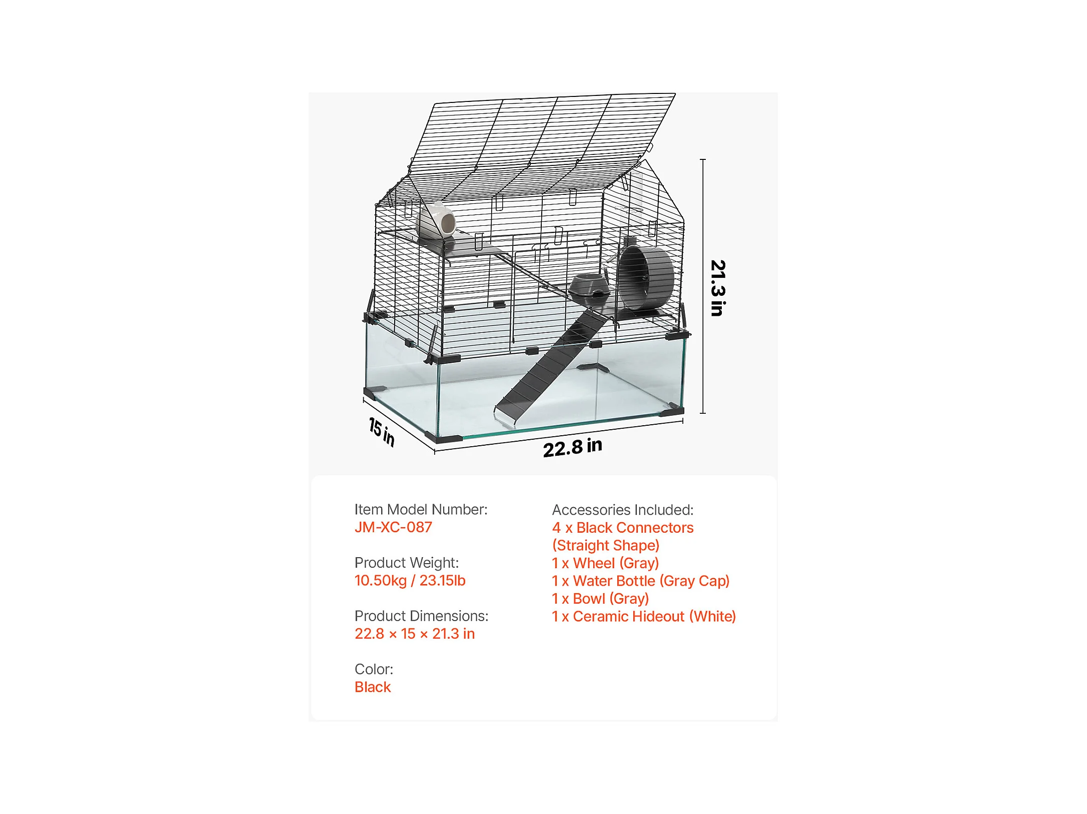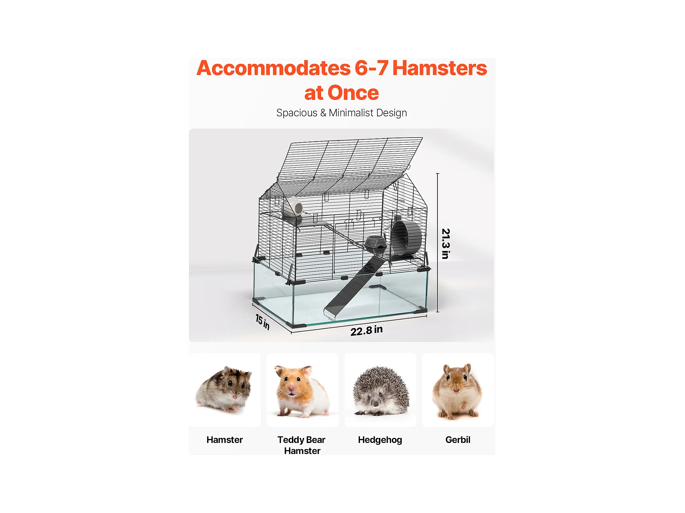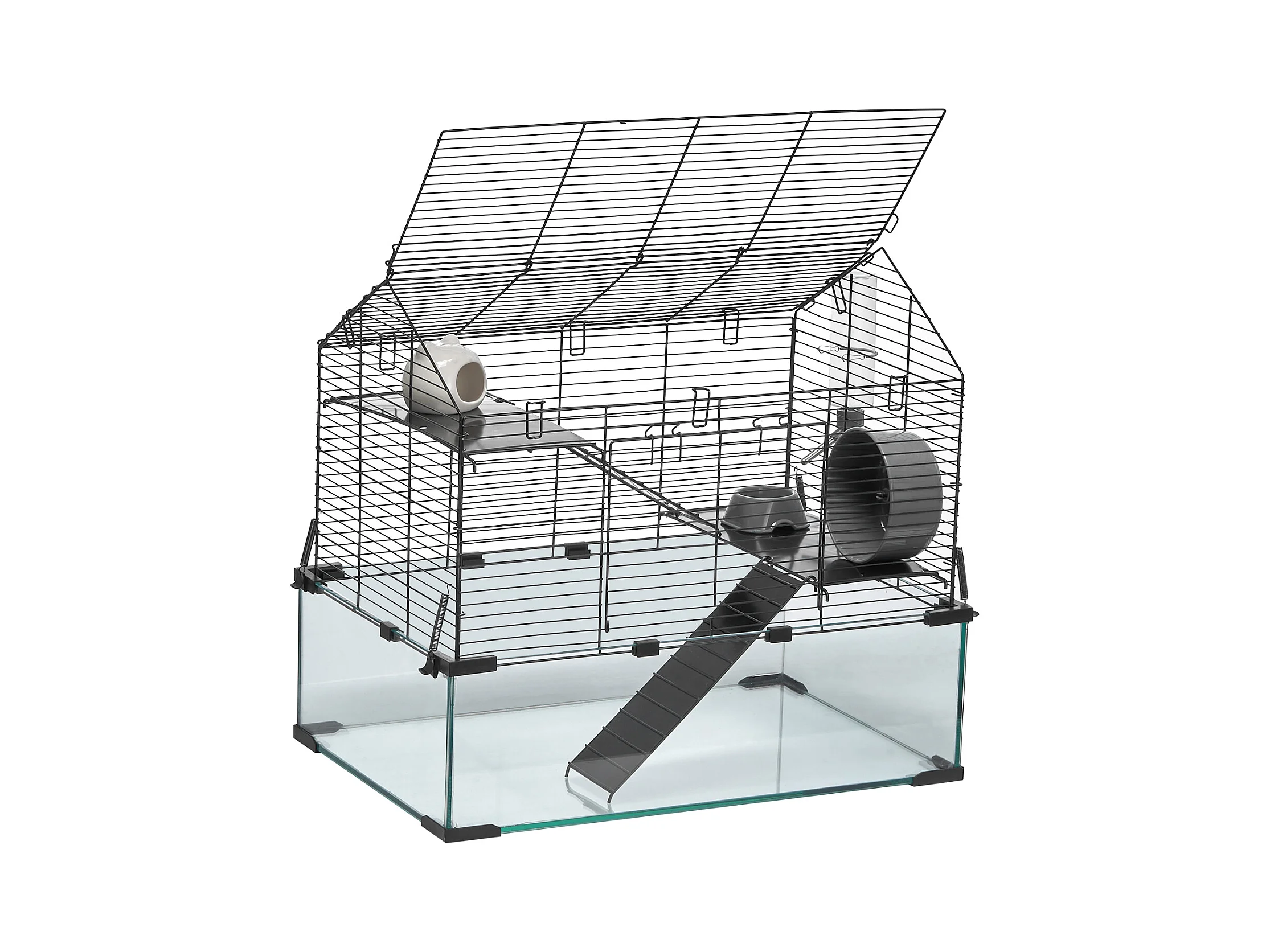 Cage Rongeur Hamster, SucceBuy Cage pour Hamster, Habitat Transparent, 58.9 x 38.1 x 54.9 cm, Cage Ventilée pour Petits Animaux avec Bouteille