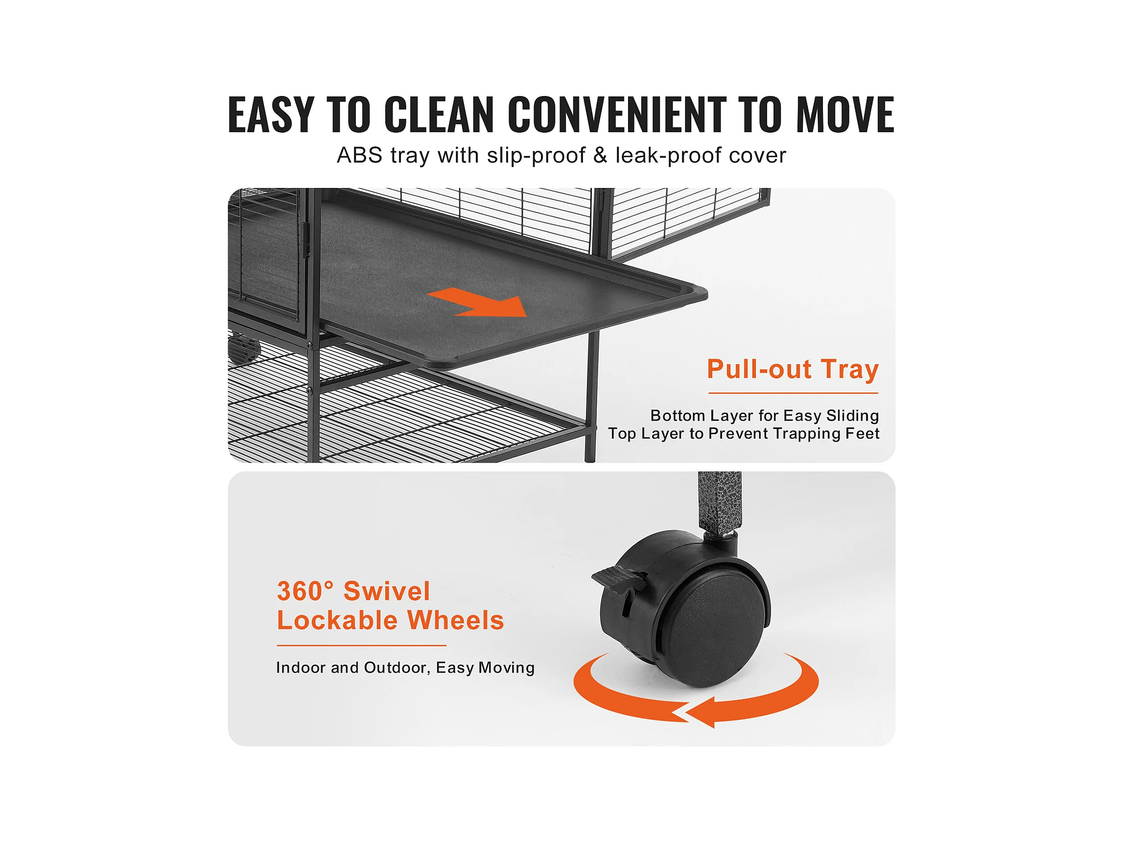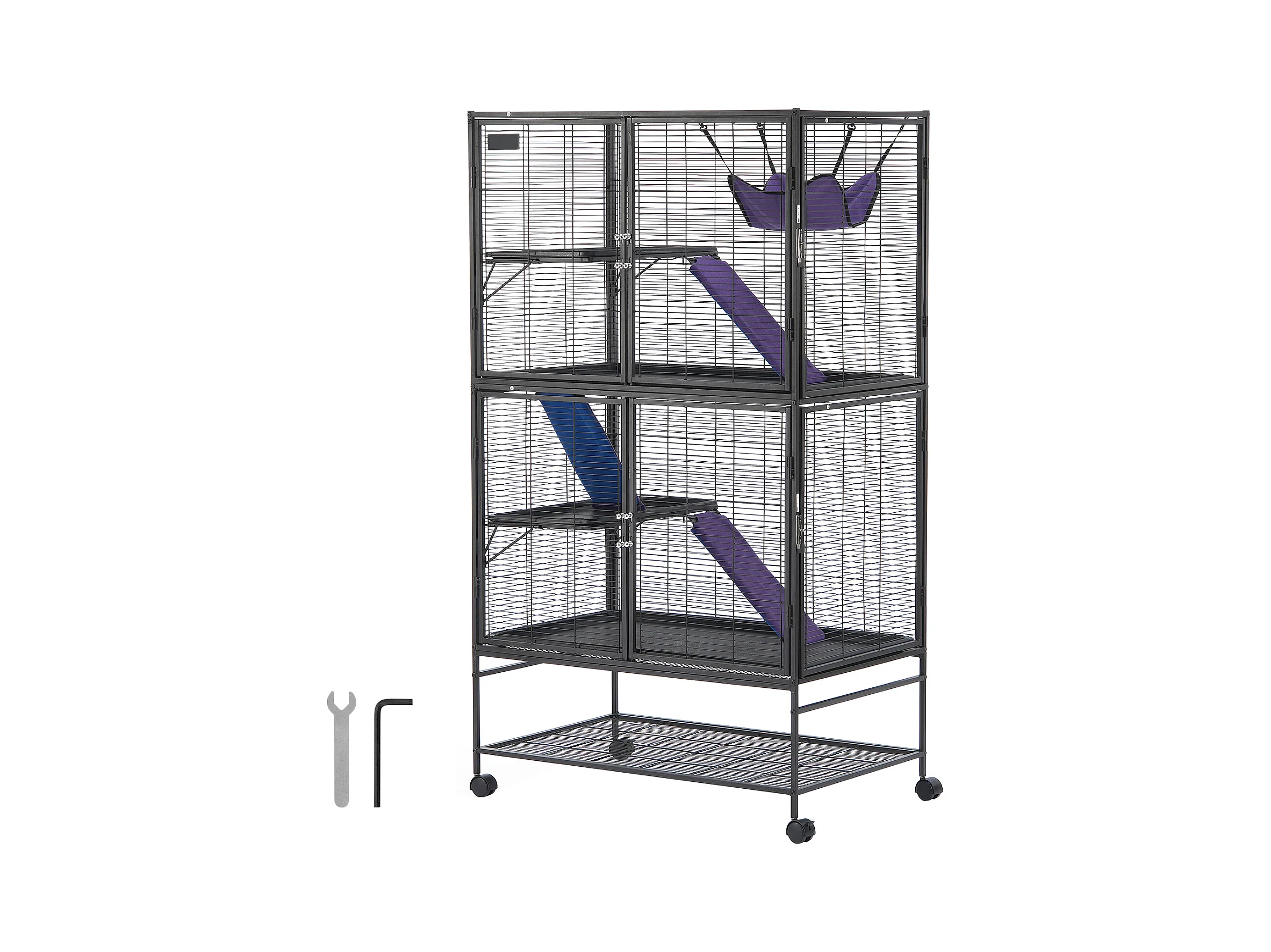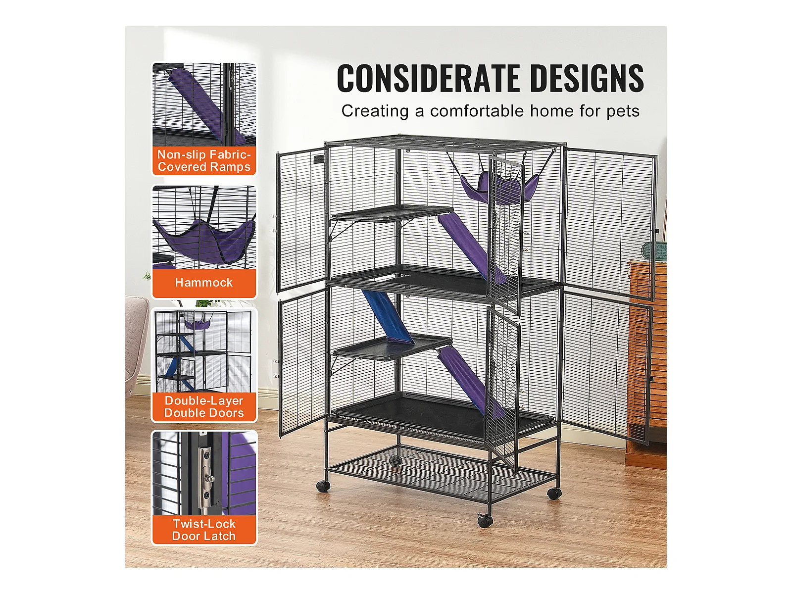 Cage Roulante pour Petits Animaux SucceBuy, 4 Niveaux Métal 164cm Plateau et Rampe