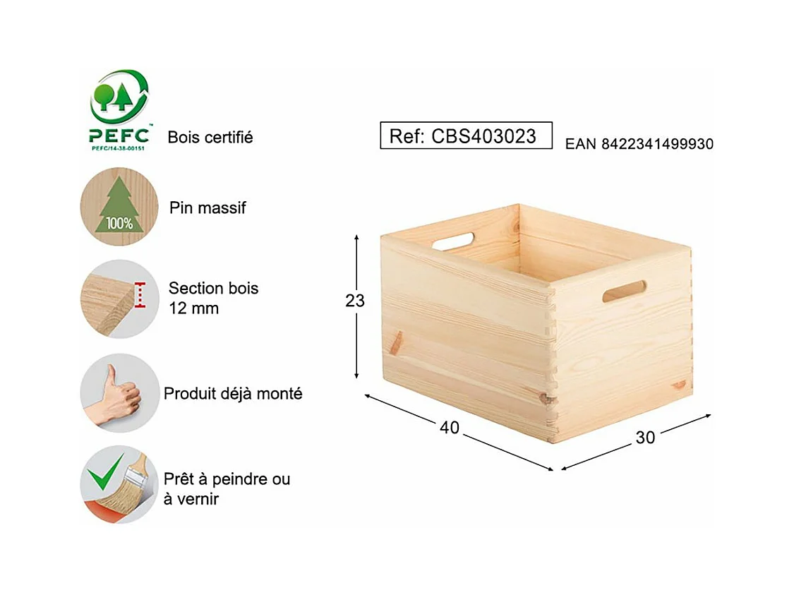 Caisse en bois de rangement 40 x 30 x 23 cm