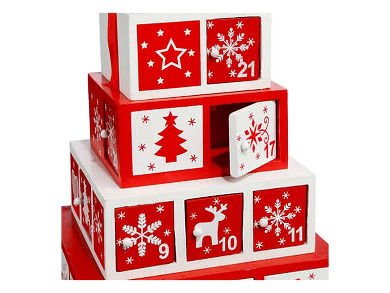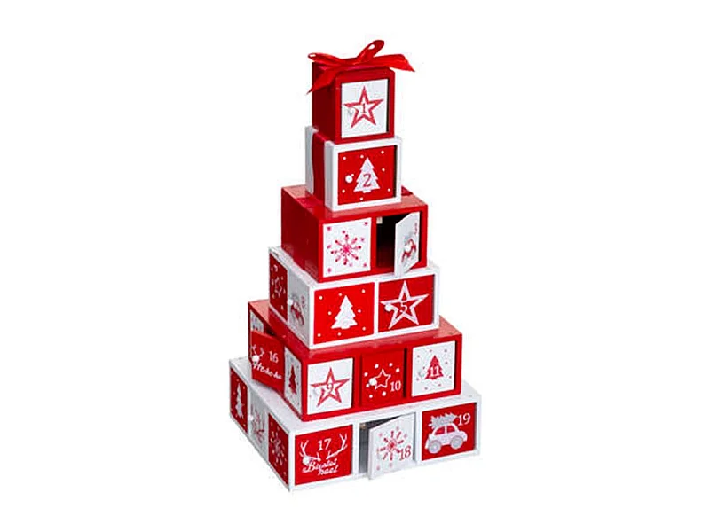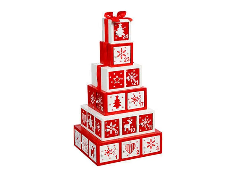 Calendrier de l'Avent "Cadeau" 35cm Rouge & Blanc