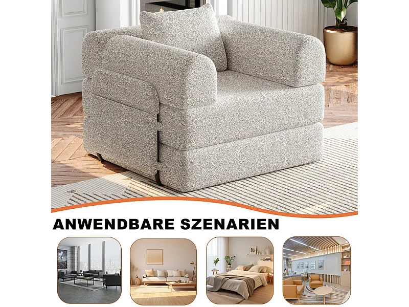 Canapé 1 place modulable en chenille - avec poches rangement - cadres extérieur métalliques - canapé-lit pliant - Kaki