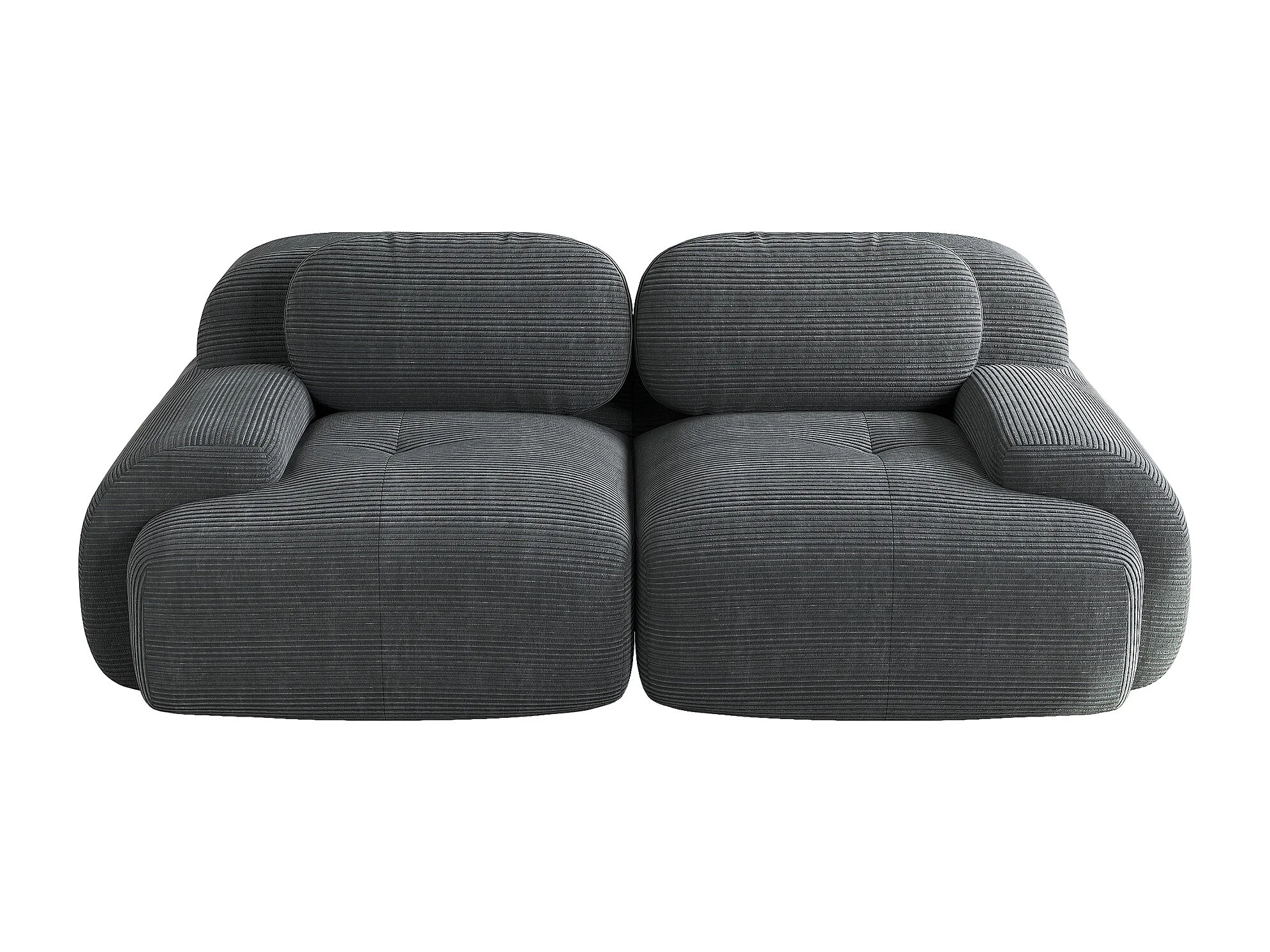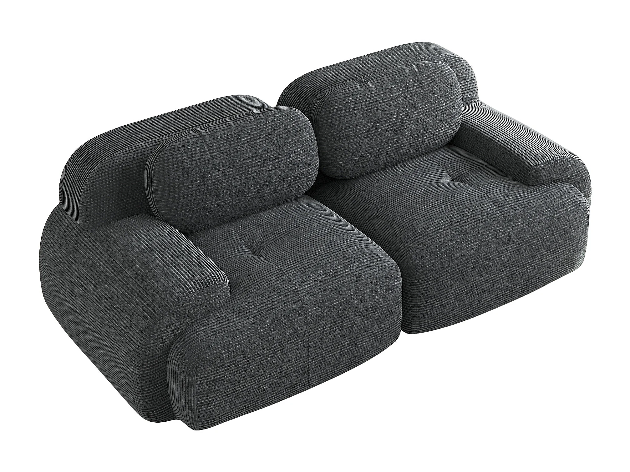 Canapé 2 places avec accoudoirs courbés et dossier rembourré - velours côtelé gris