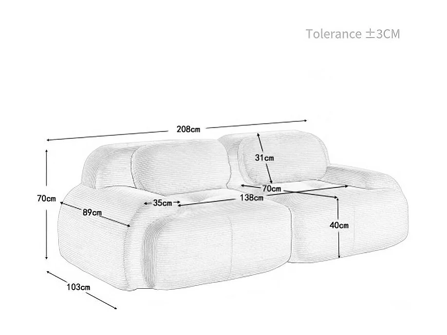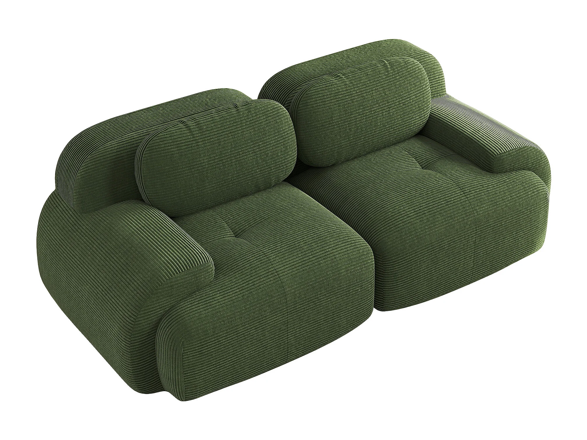 Canapé 2 places avec accoudoirs courbés et dossier rembourré - velours côtelé vert