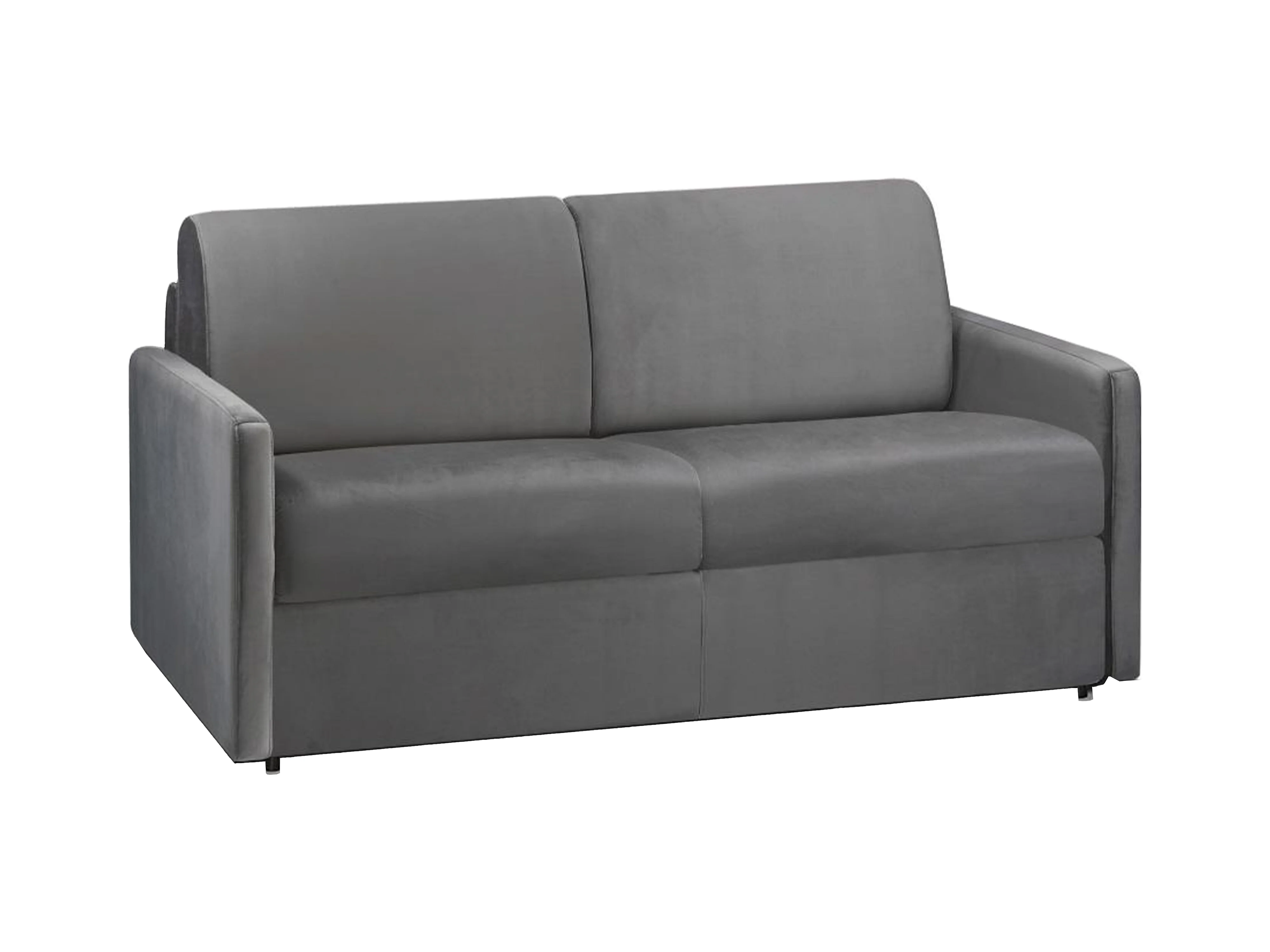 Canapé 2 places convertible express en velours gris anthracite - Couchage 120 cm - Matelas 22 cm avec mémoire de forme CALIFE