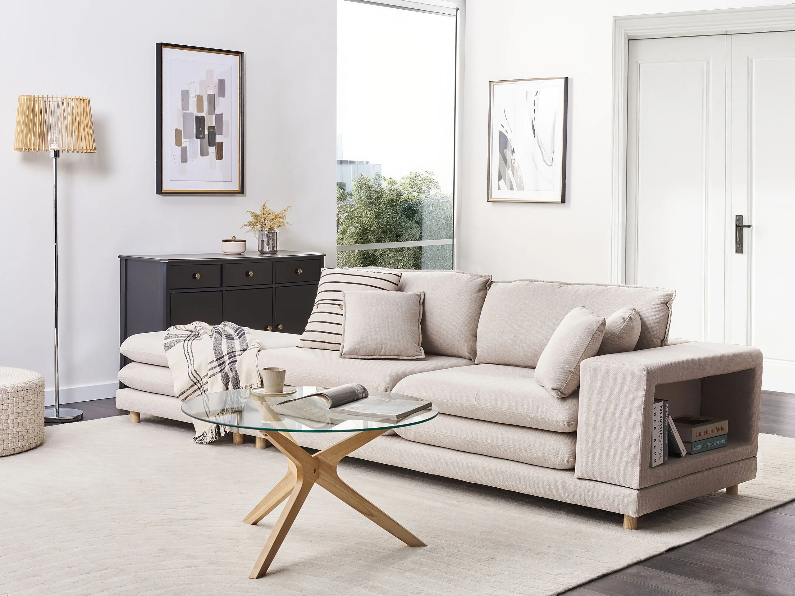 Canapé 2 places HEDEN Tissu Beige avec ottoman