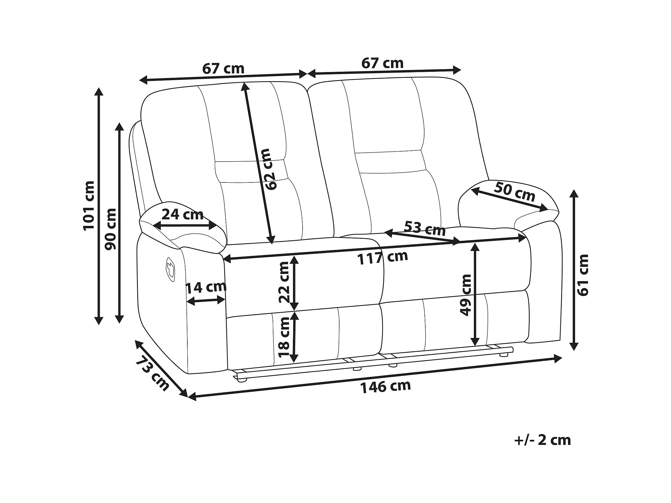 Canapé relax manuel 2 places BERGEN II Tissu Gris foncé