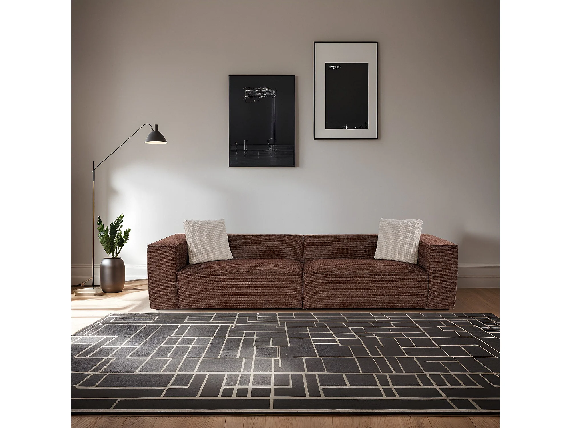 Canapé moderne 3 places Capertio Tissu Marron et Métal Noir