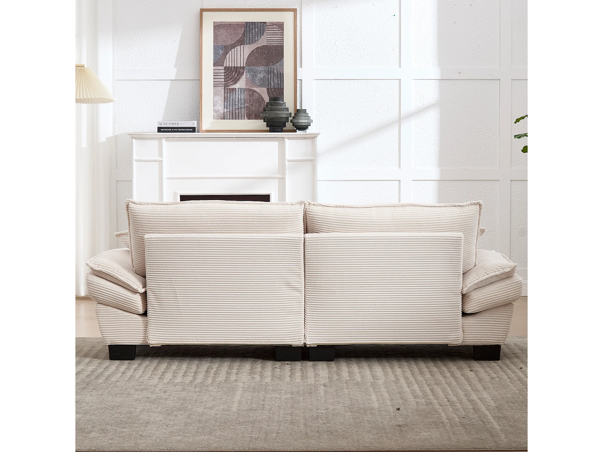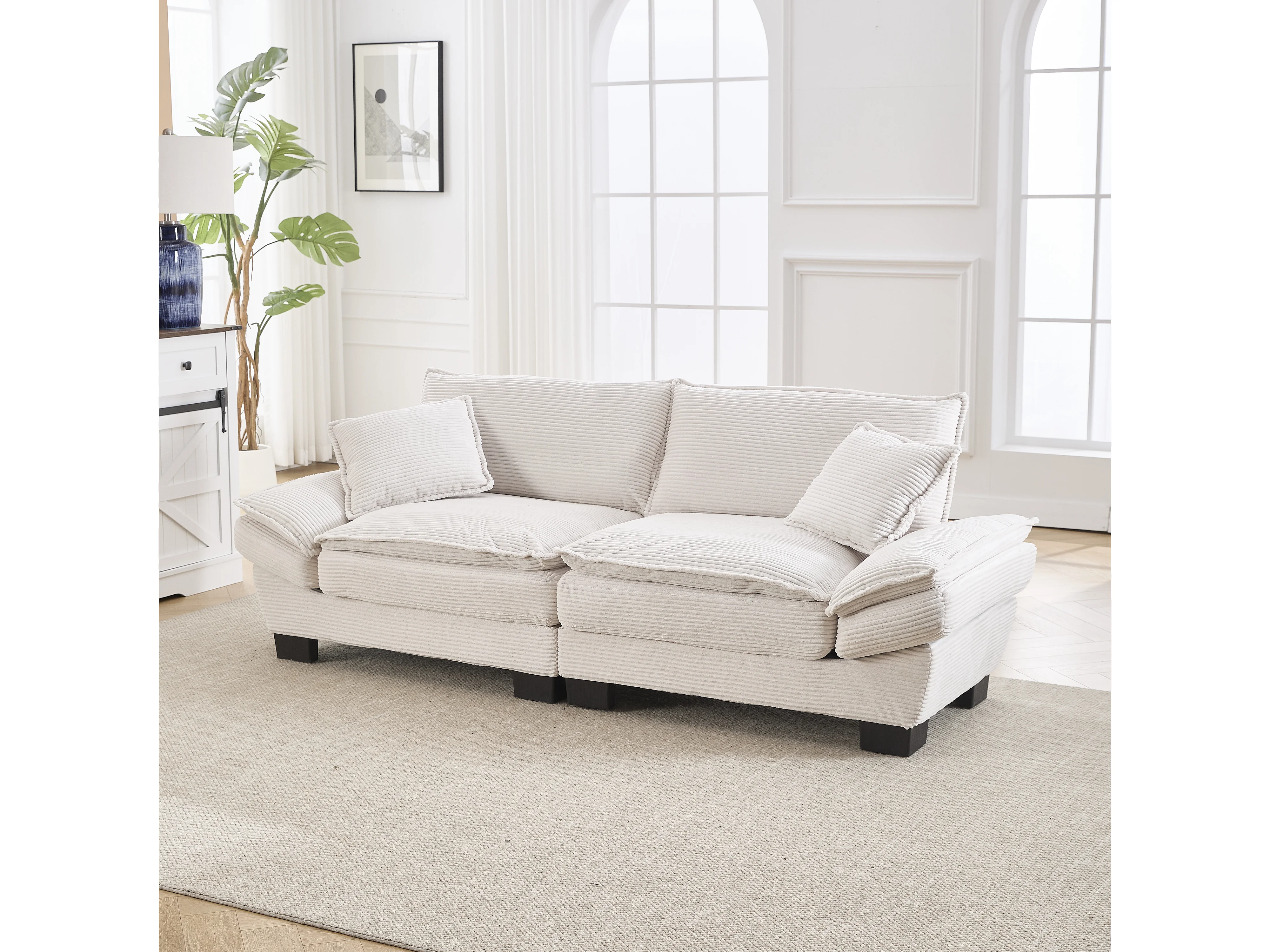 Canapé 224x81x81cm velours beige structure en bois assise ultra profonde