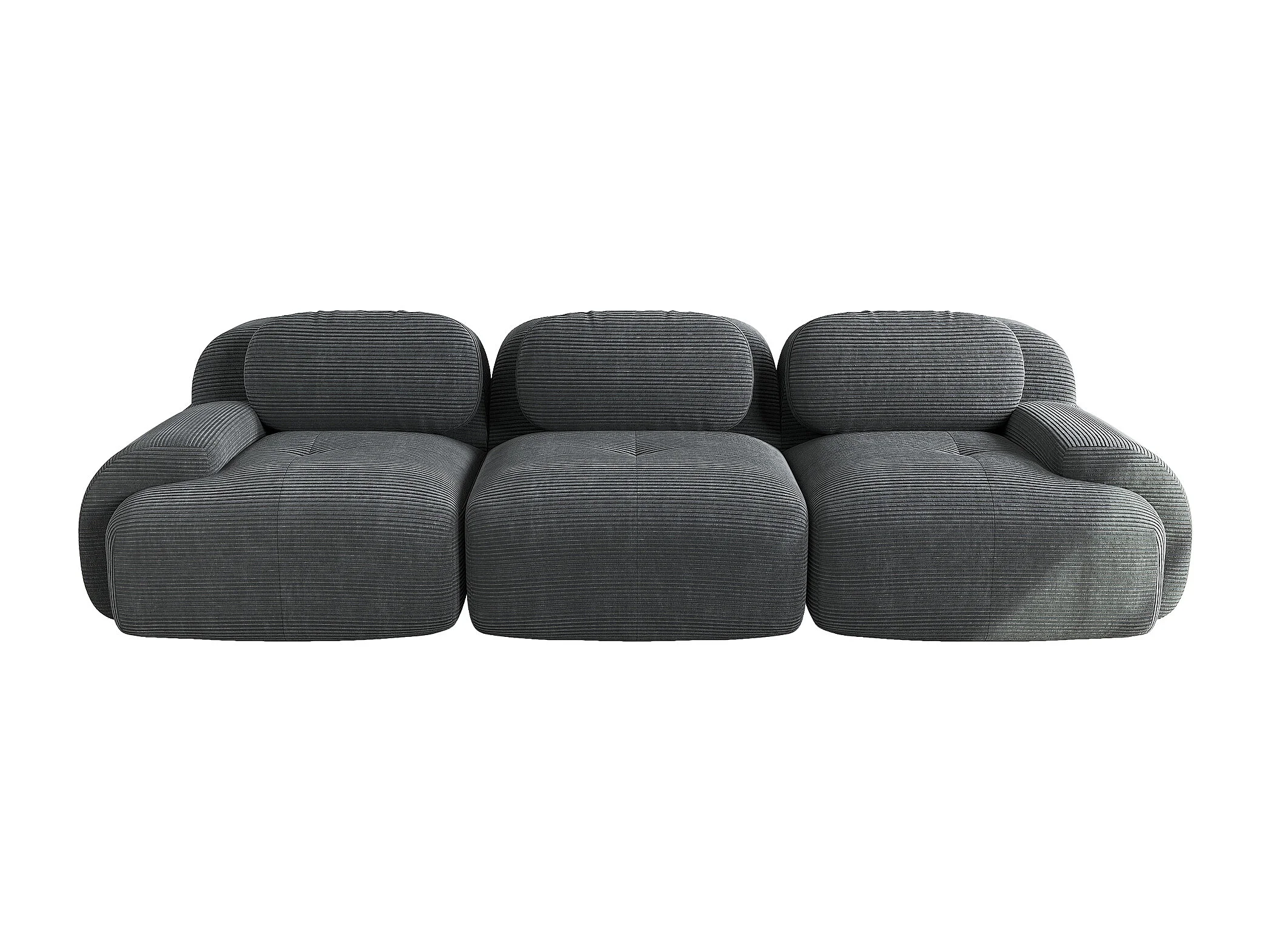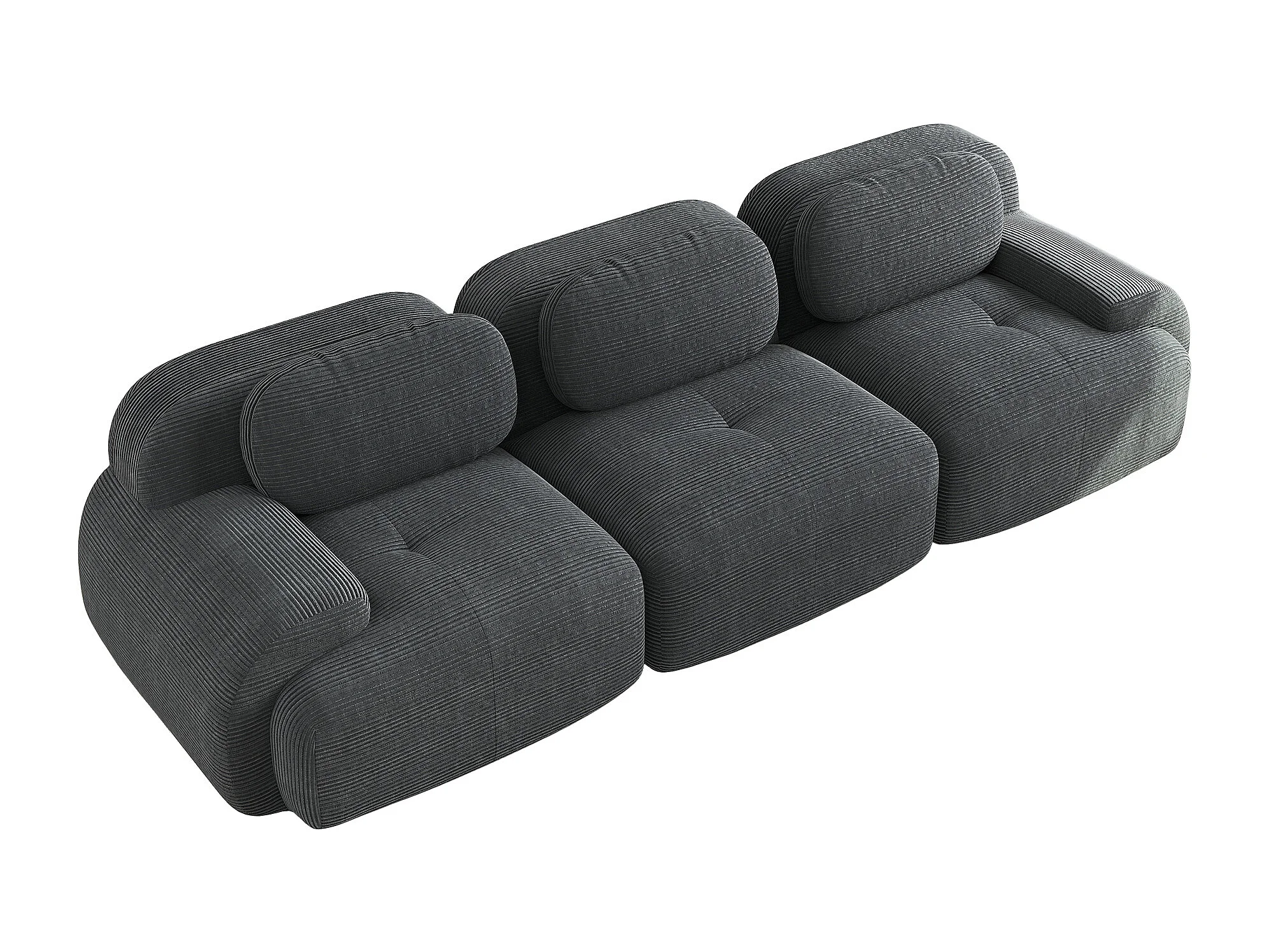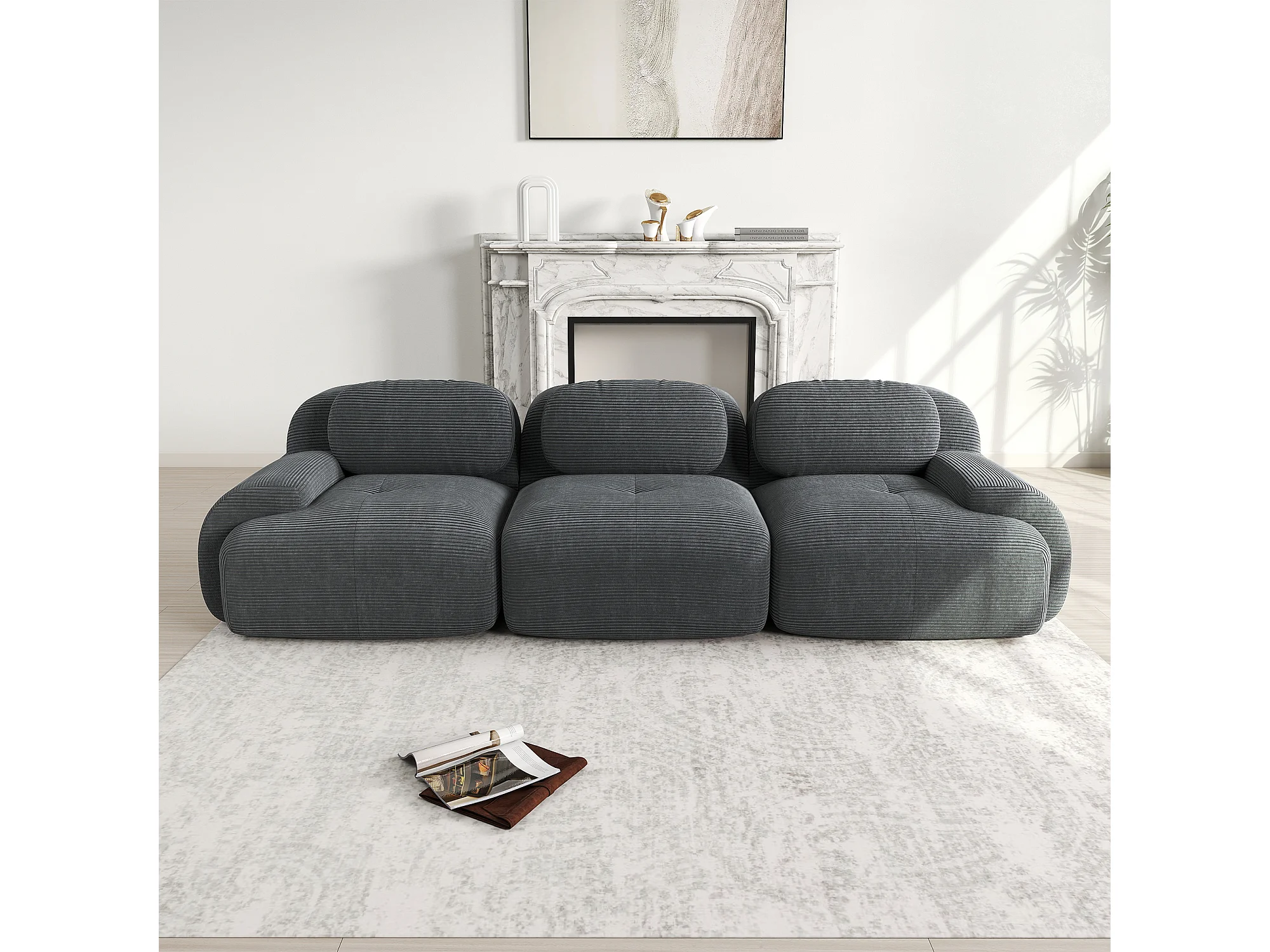 Canapé 3 places avec dossier et accoudoirs rembourrés, velours côtelé gris - pour salon et chambre