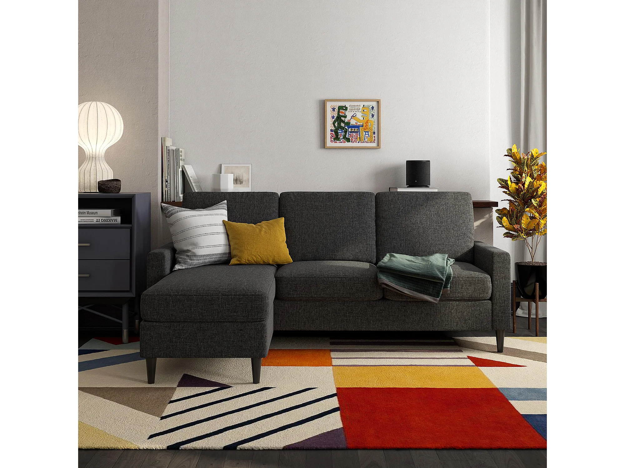Kaci | Canapé 3 places avec méridienne en tissu gris