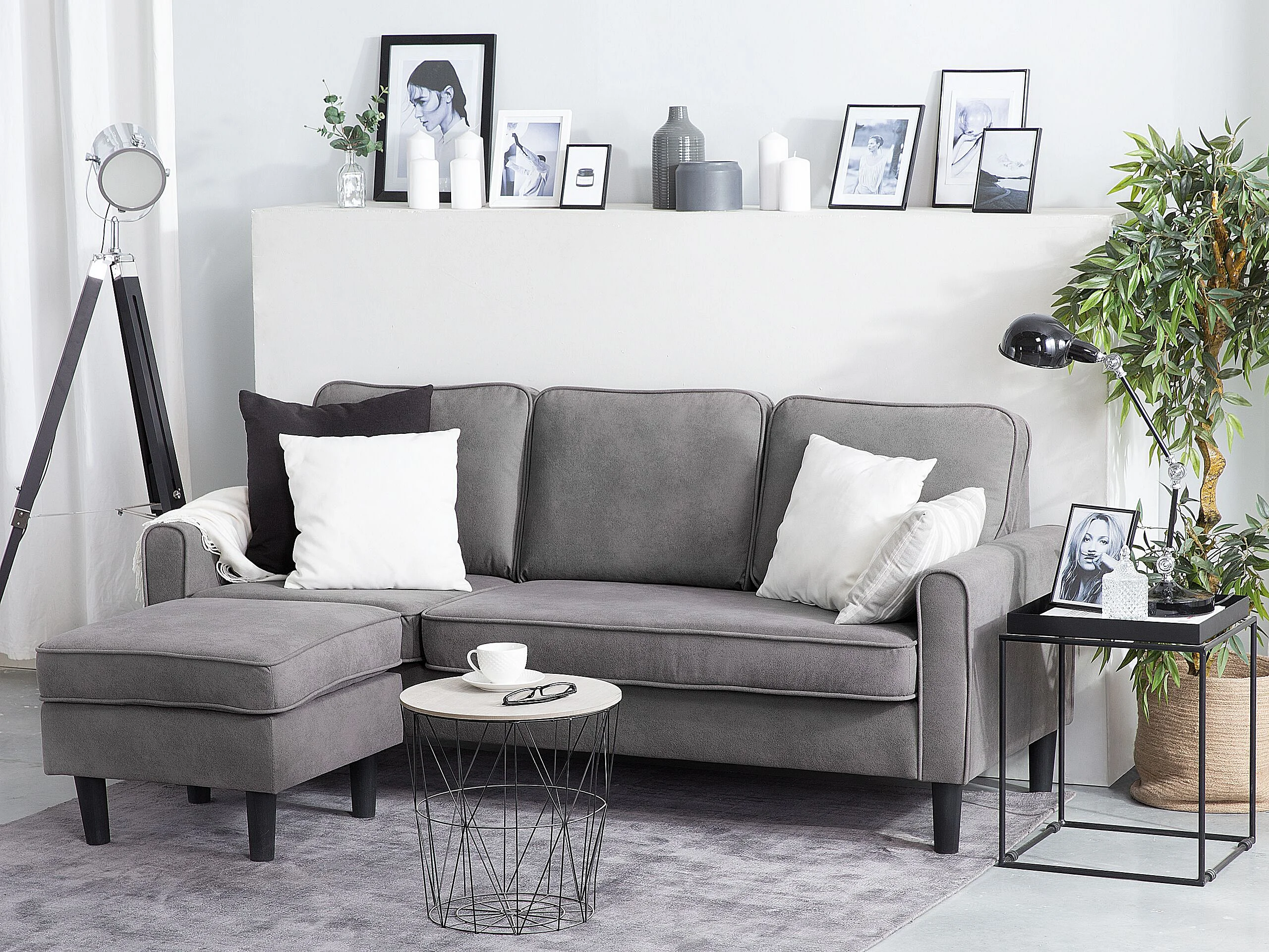 Canapé 3 places AVESTA Tissu Gris clair avec ottoman