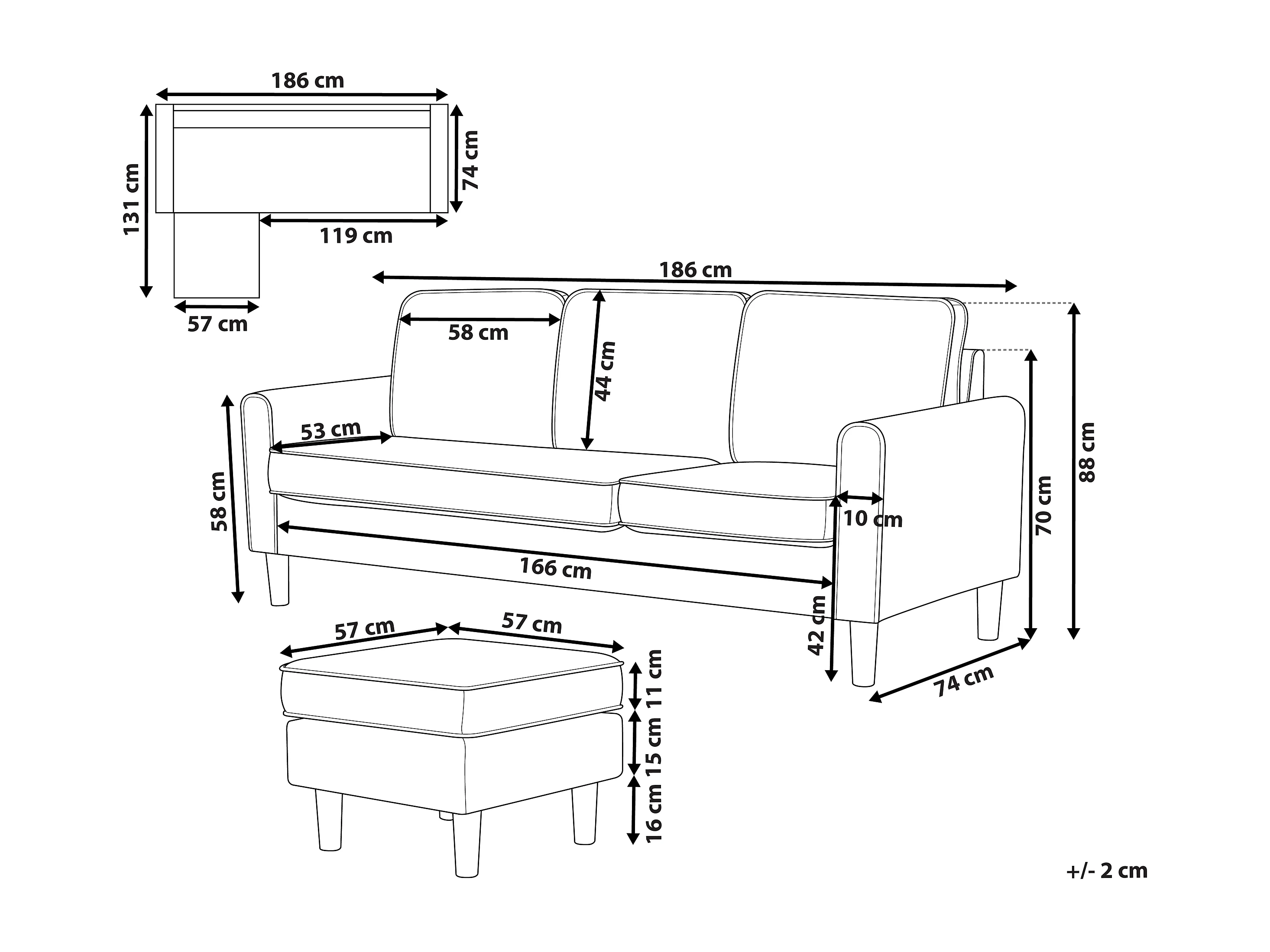 Canapé 3 places AVESTA Tissu Rouge Bordeaux avec ottoman