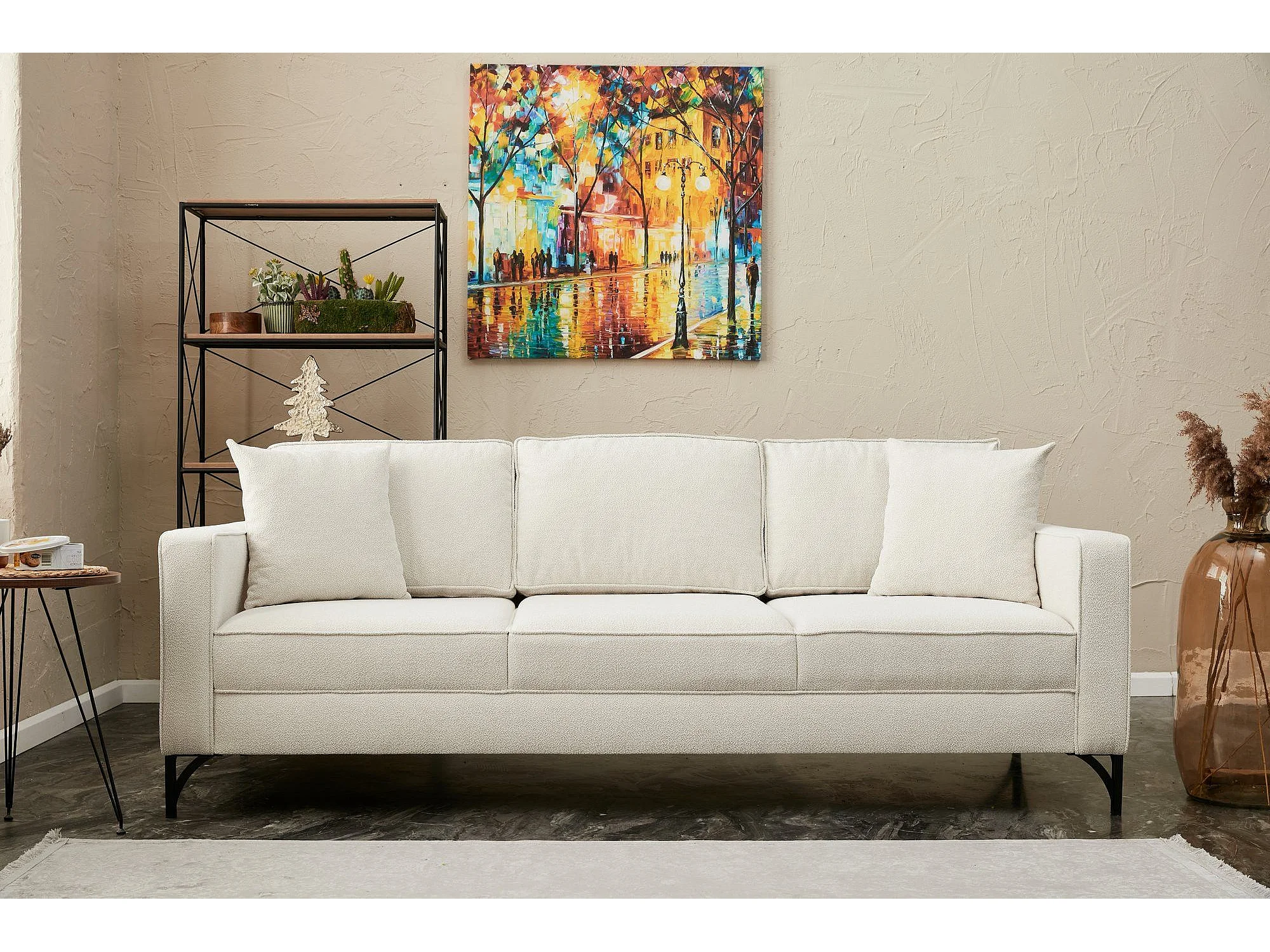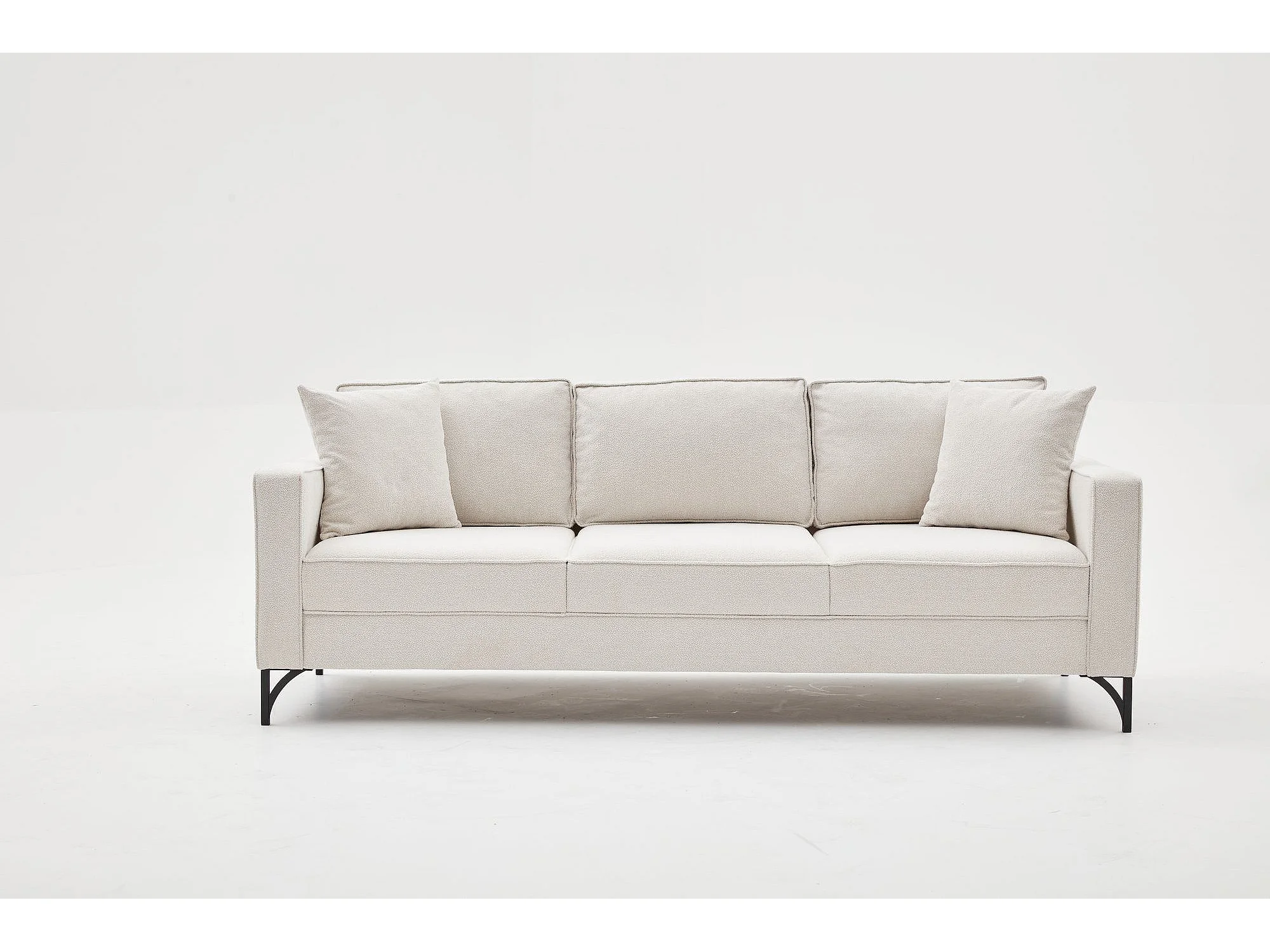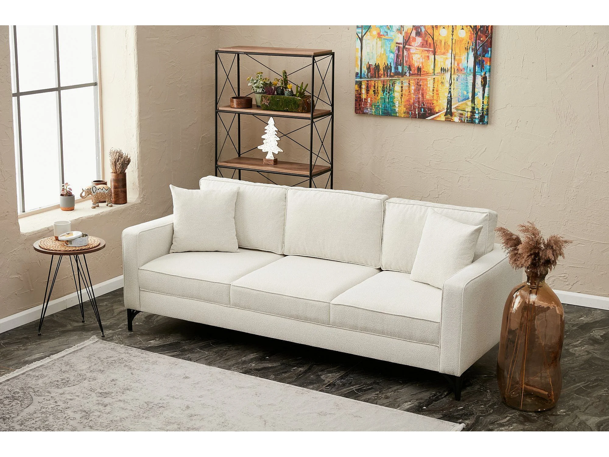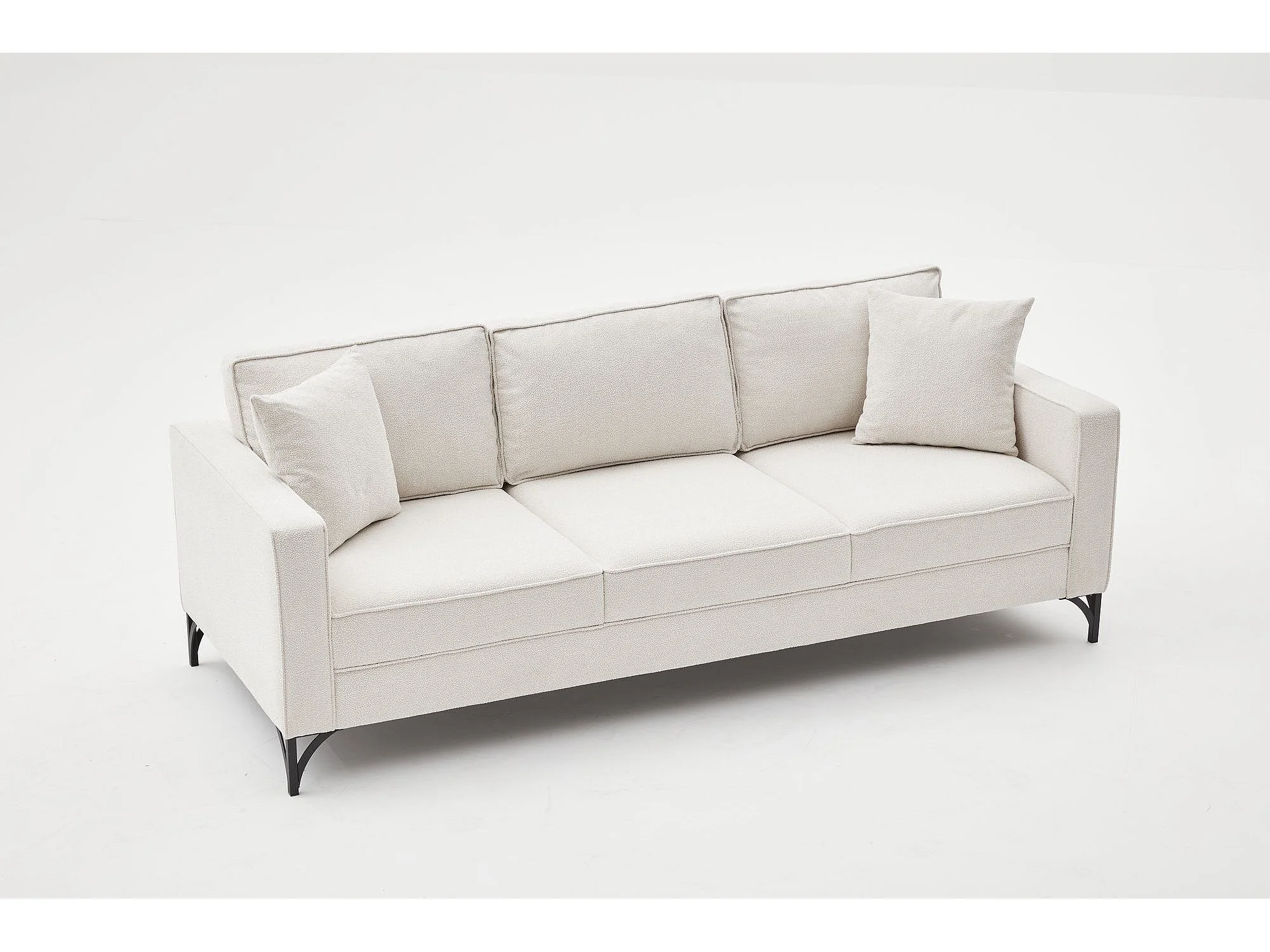 Canapé 3 places Barlino Tissu Blanc crème pieds Noir