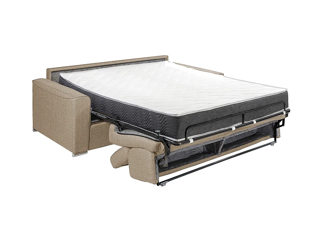 Canapé 3 places convertible express en tissu beige - couchage lattes larges 140 cm - Matelas 22 cm avec mémoire de forme VIZIR