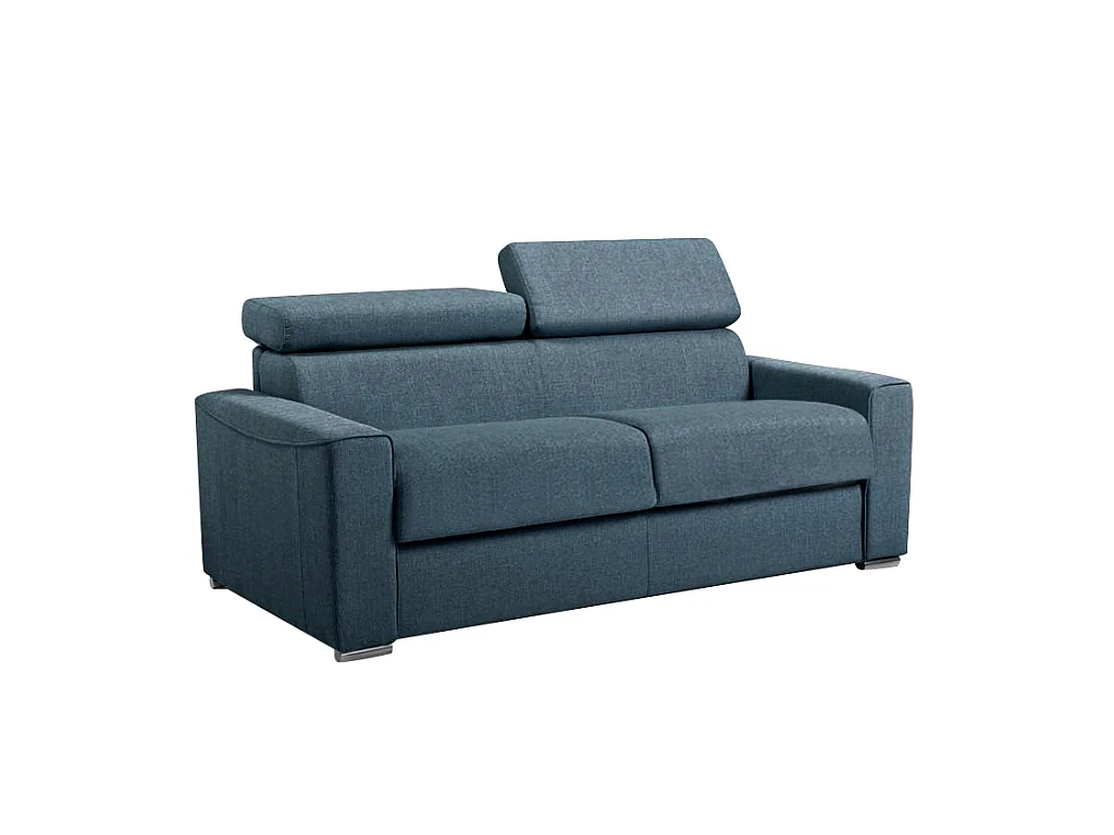 Canapé 3 places convertible express en tissu bleu - couchage 140 cm - Matelas 22 cm avec mémoire de forme VIZIR