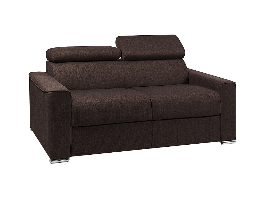 Canapé 3 places convertible express en tissu marron - couchage lattes larges 140 cm - Matelas 22 cm avec mémoire de forme VIZIR