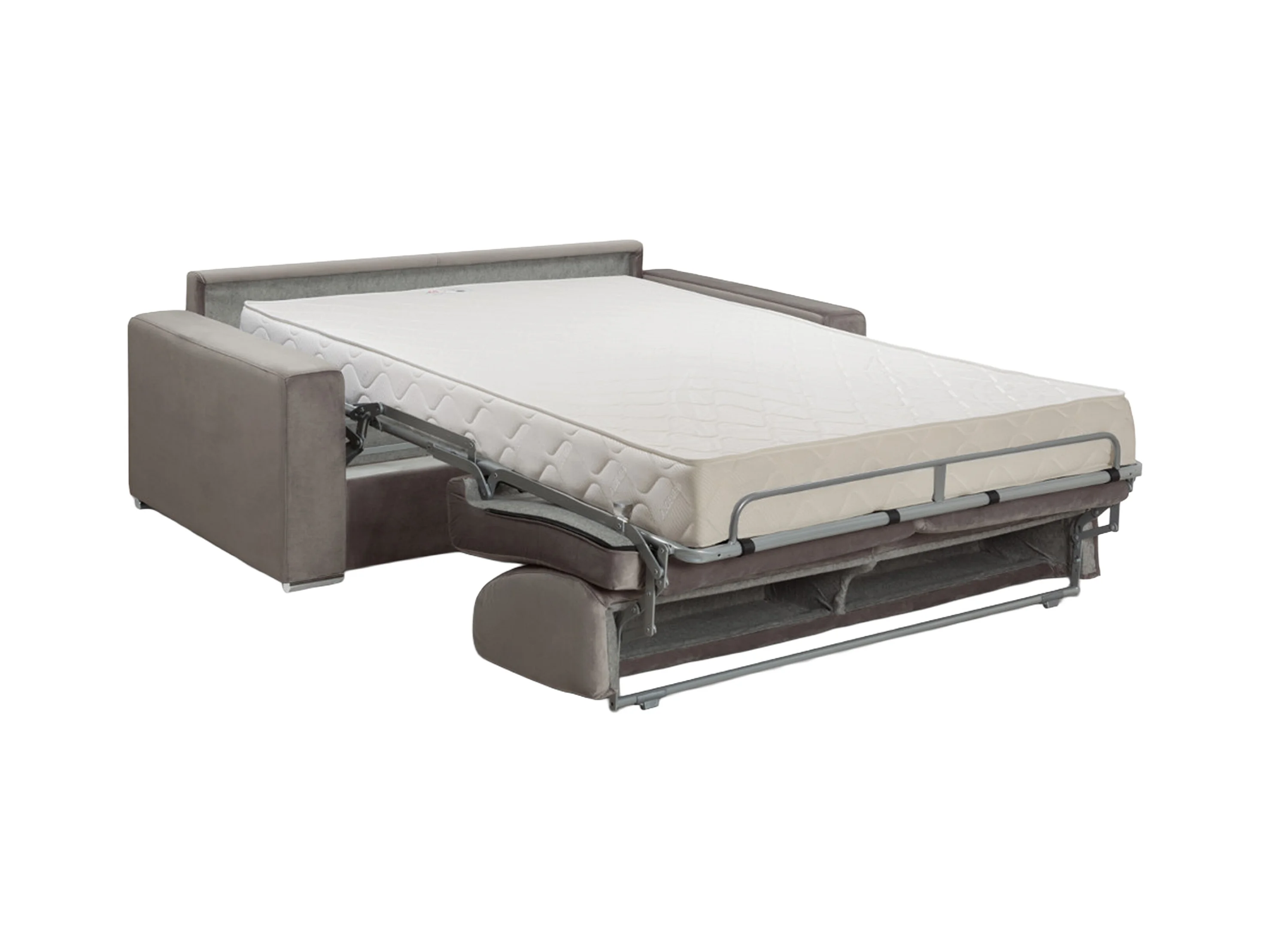 Canapé 3 places convertible express en velours beige - Couchage lattes larges 140 cm - Matelas 16 cm avec mousse à mémoire de forme CALITO