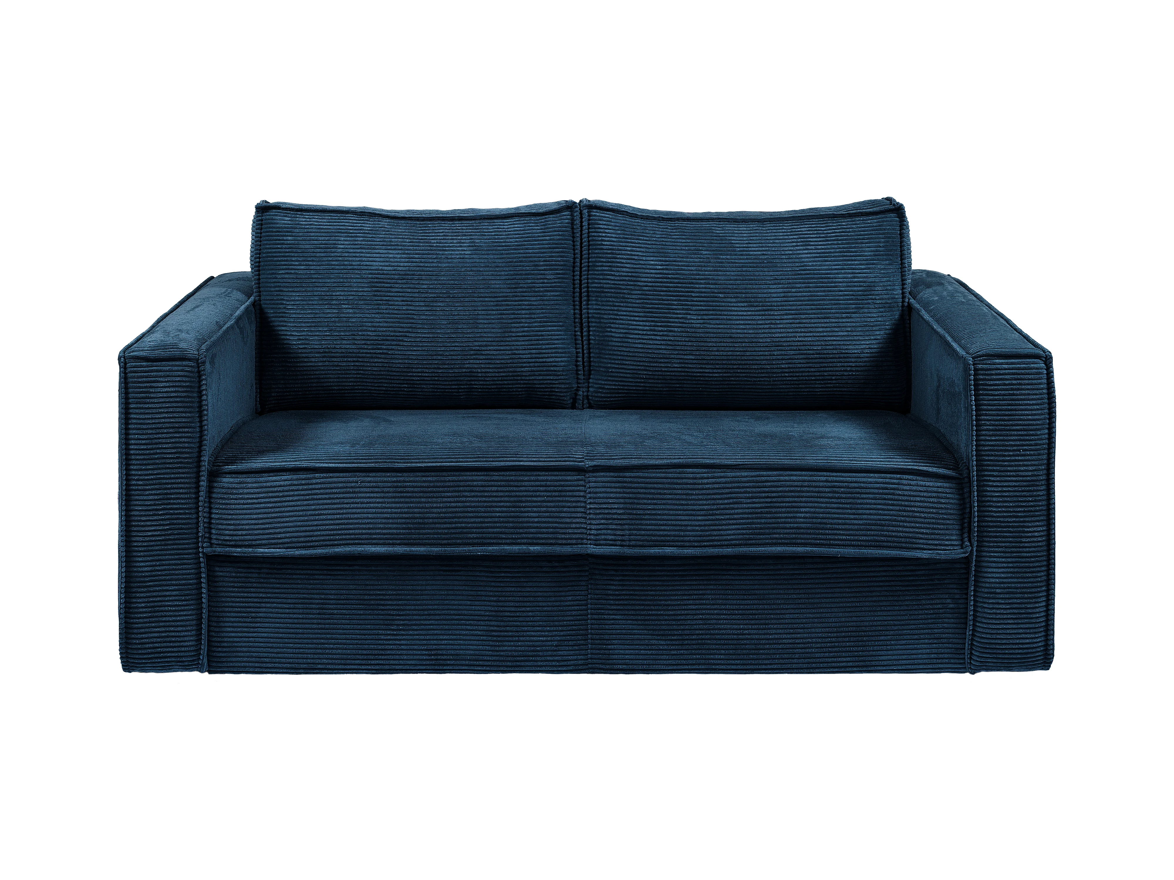 Canapé 3 places convertible express en velours côtelé bleu nuit - Couchage 140 cm - Matelas 22 cm avec mémoire de forme LORETO