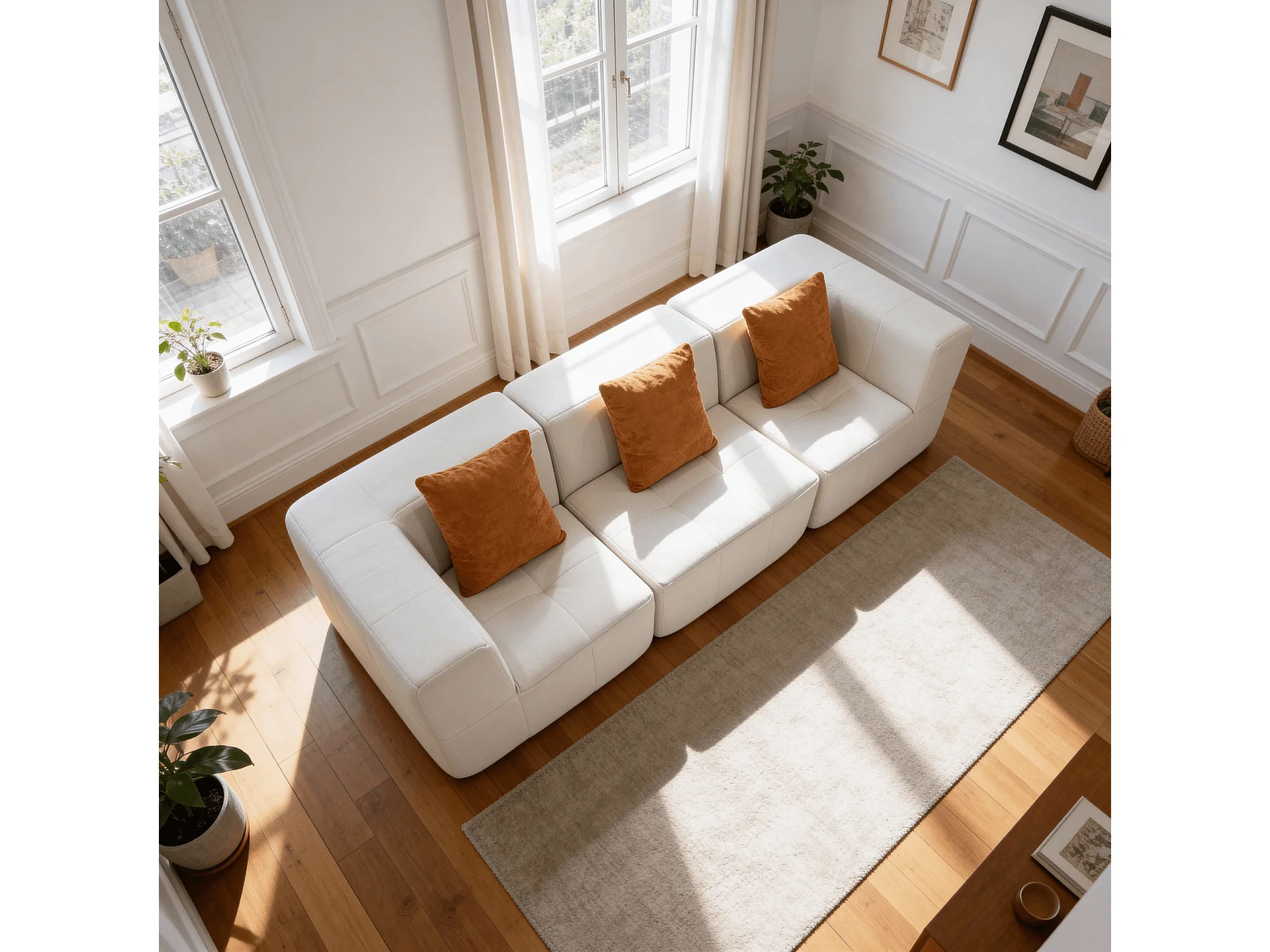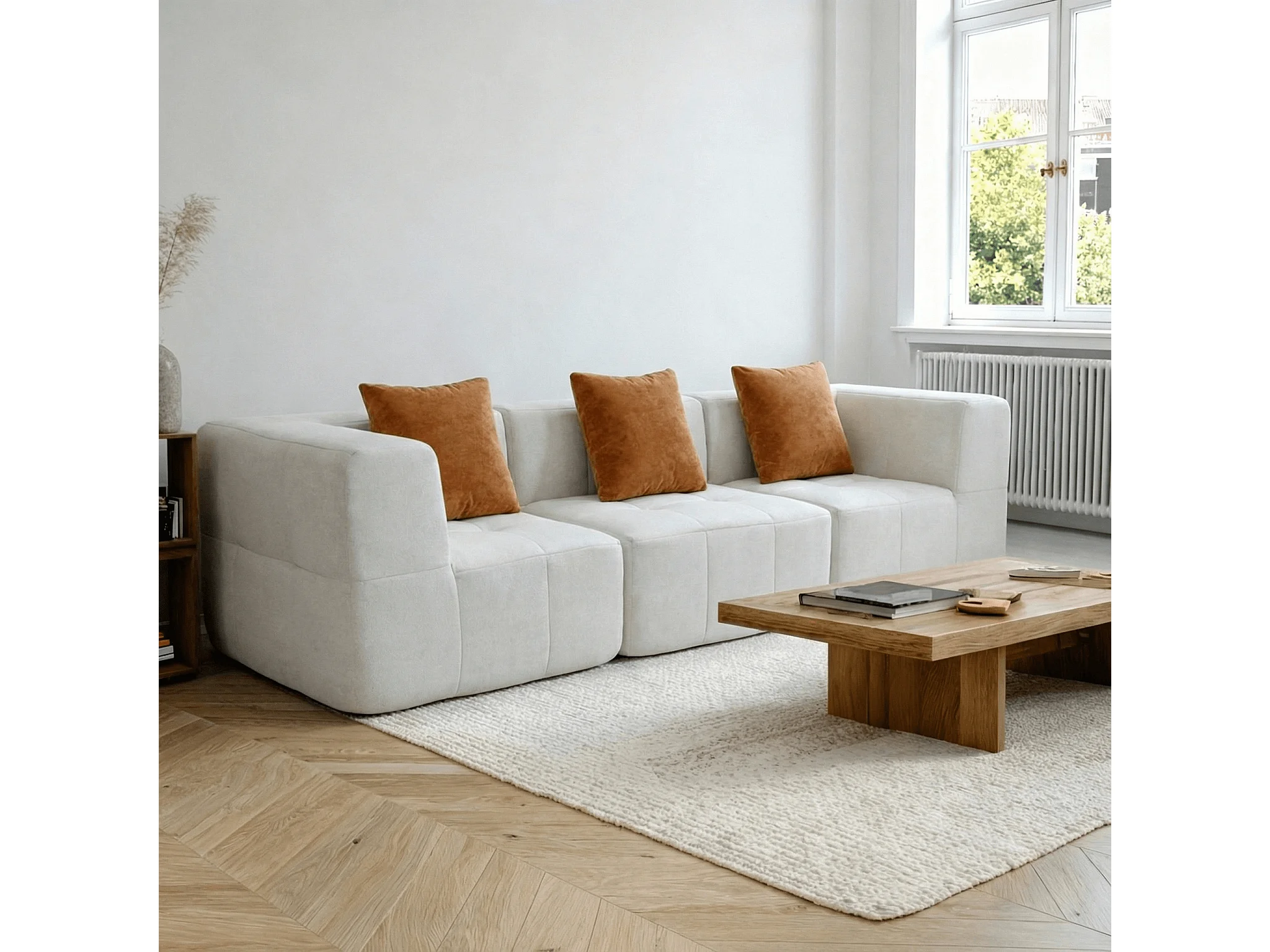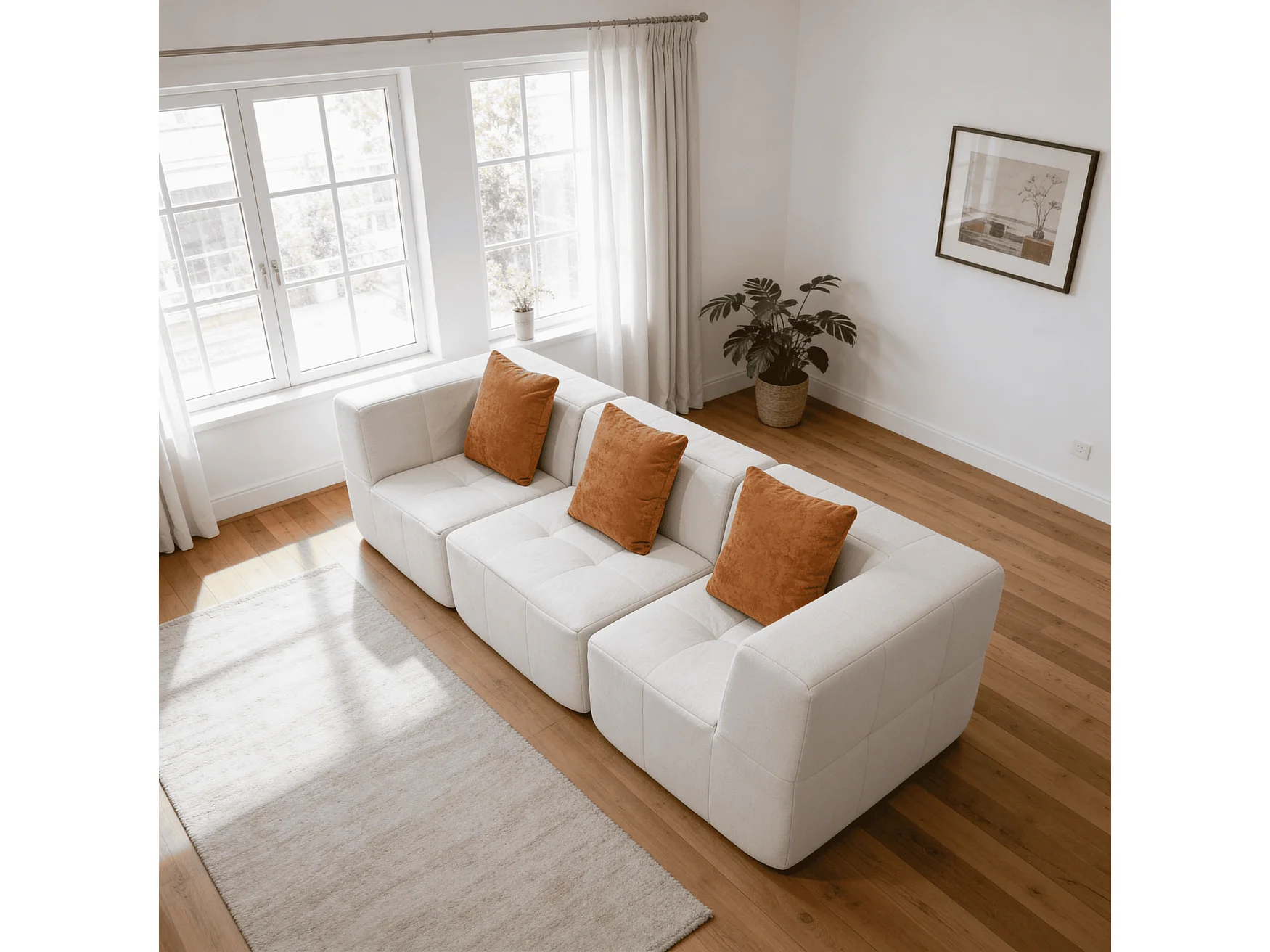 Canapé 3 places Eden Simple en flannelle - blanc et orange