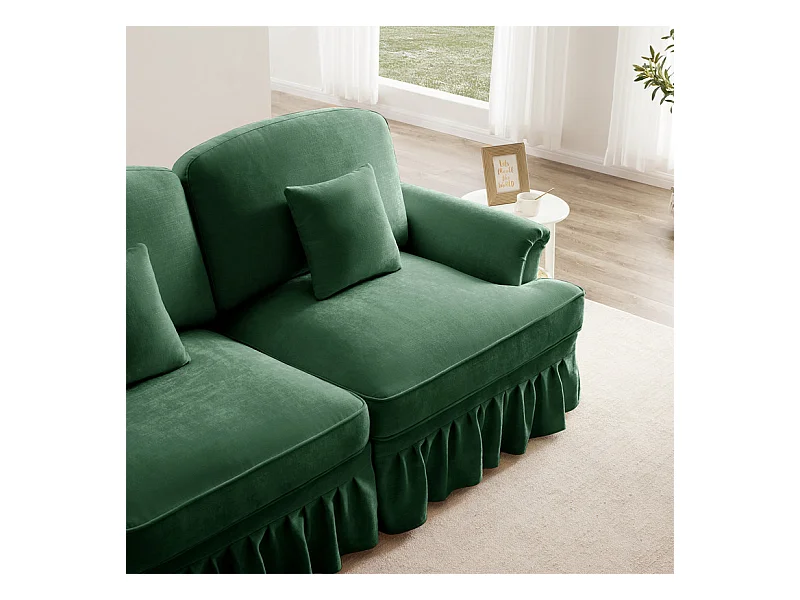 Canapé 3 places en Chenille milieu du siècle, avec cantonnière amovible et 3 oreillers, 272x83.5x93cm, Vert