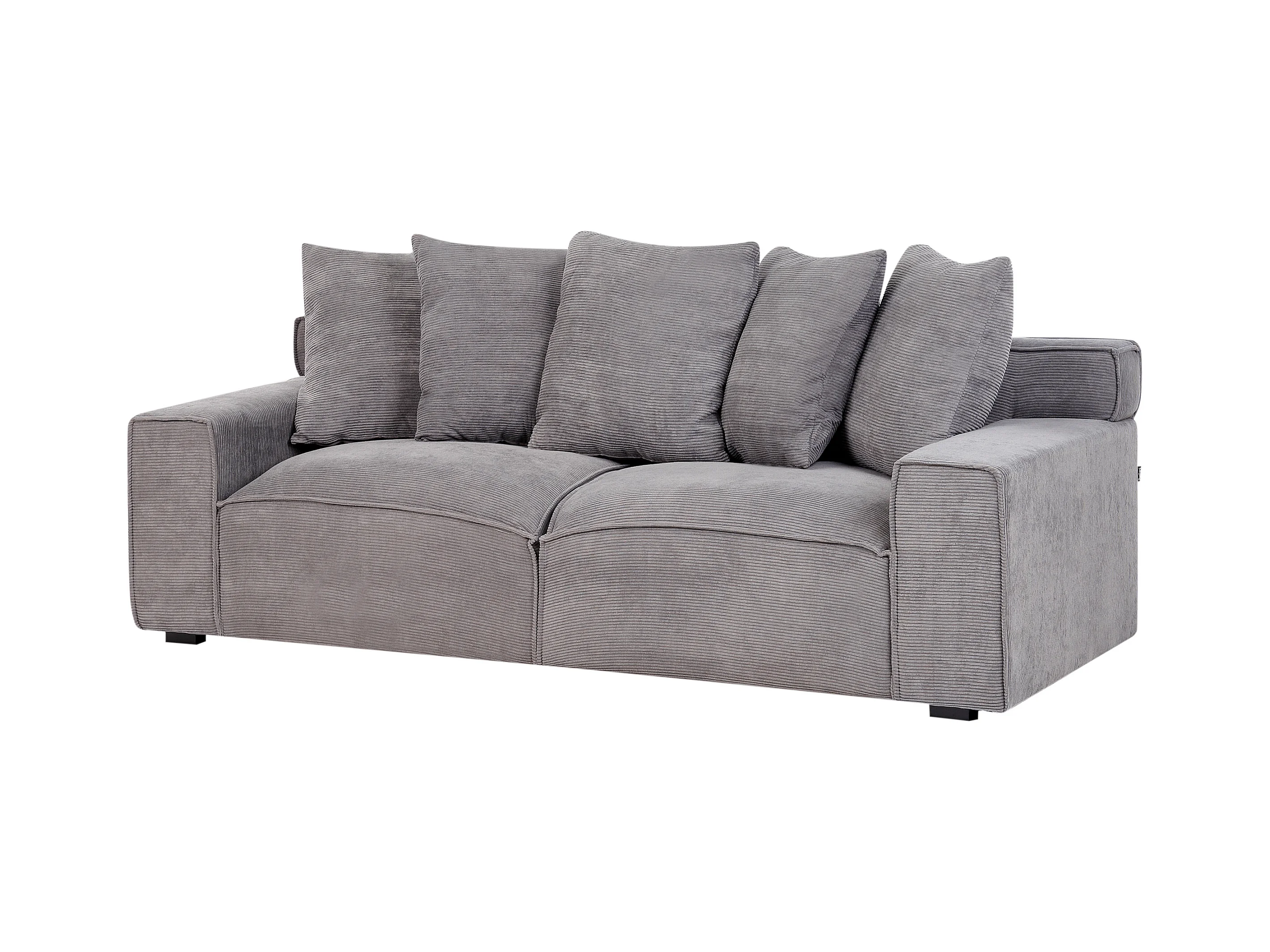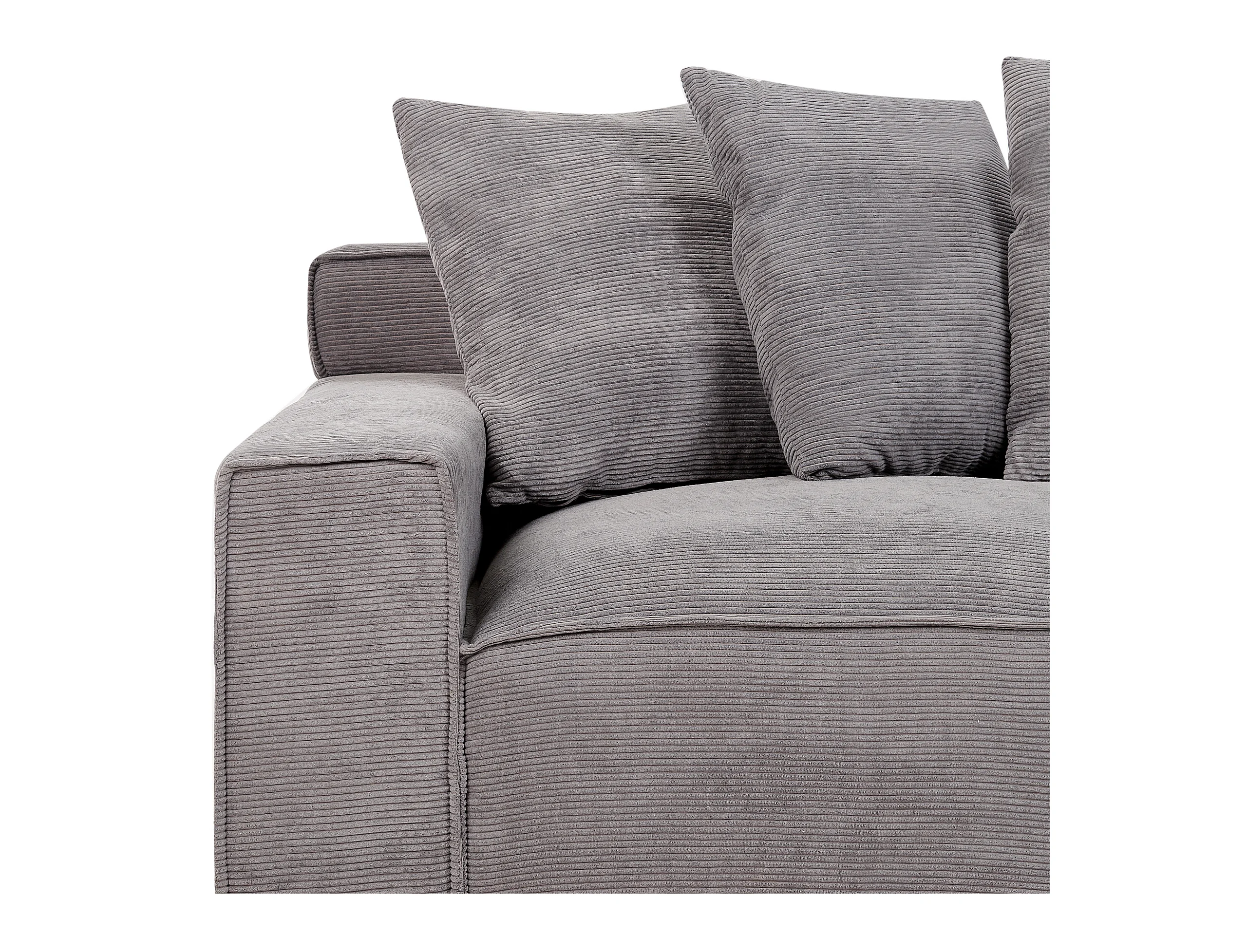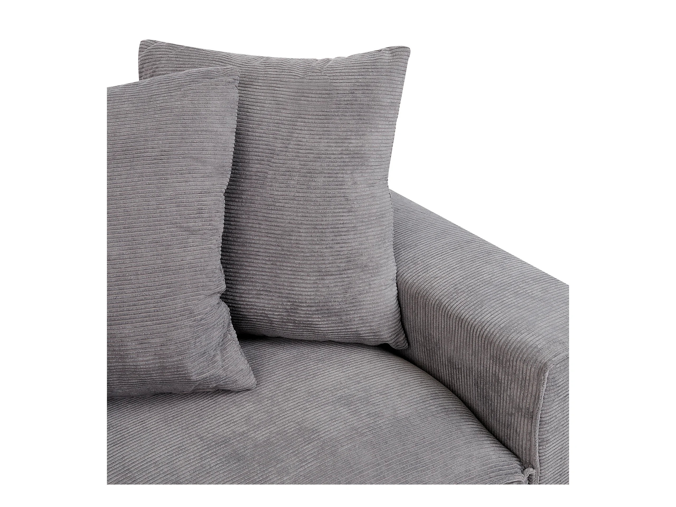 Grand canapé en velours côtelé avec 2 Oreillers - Gris - 256 x 89 x 88cm