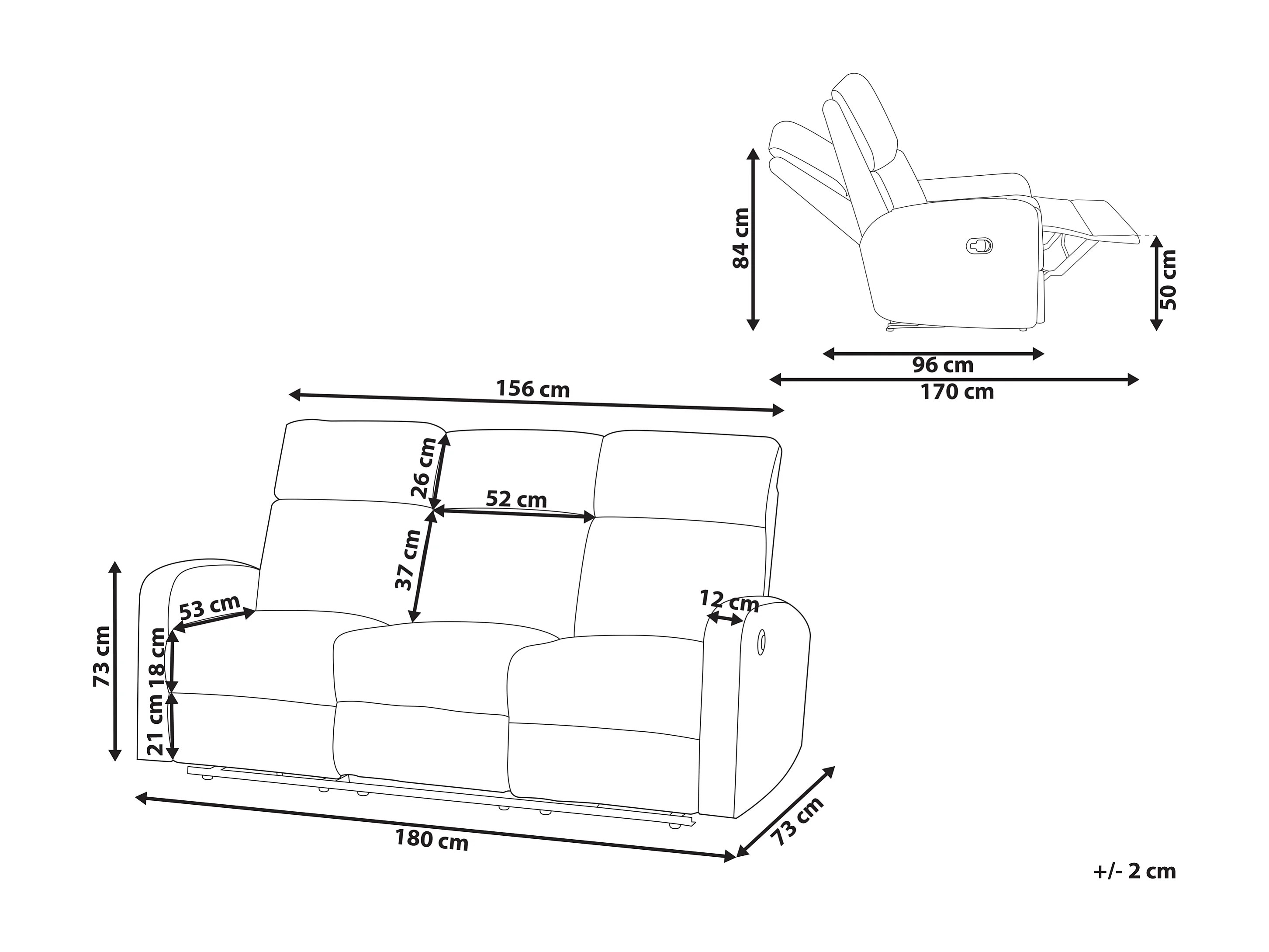 Canapé relax électrique 3 places VERDAL Velours Blanc cassé