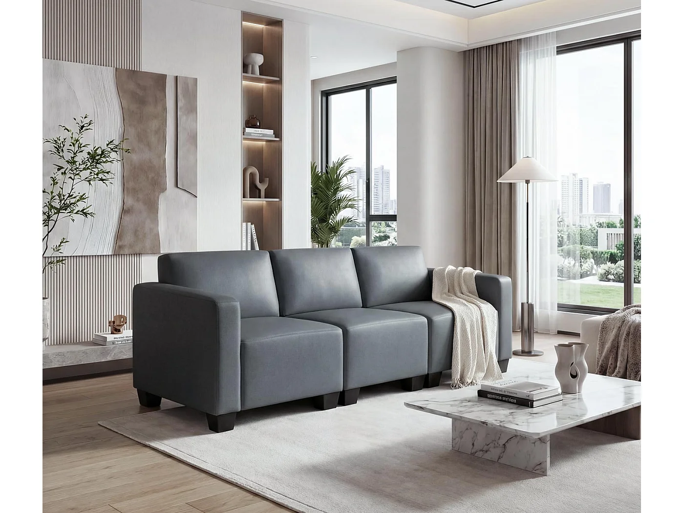 Canapé 3 places Moncalieri, gris foncé