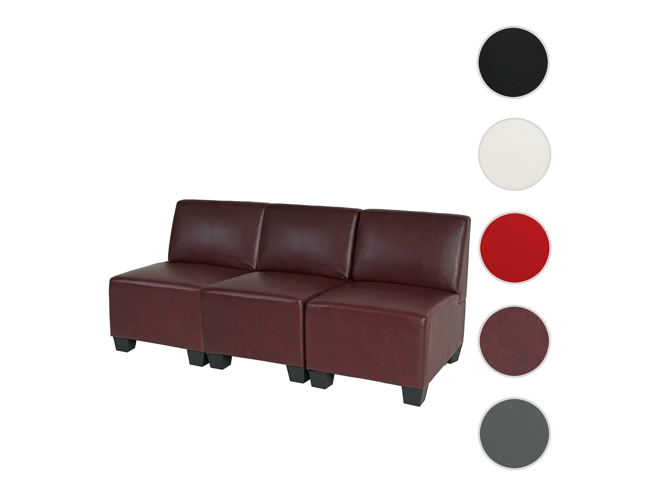 Canapé 3 places Moncalieri, rouge-brun, sans accoudoirs