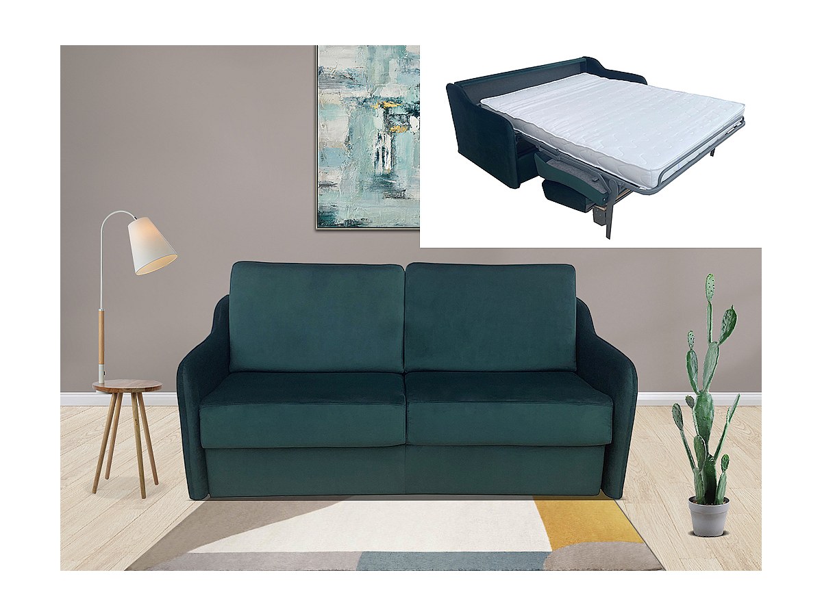 Canapé 3 places convertible express en velours COTIO - Vert
