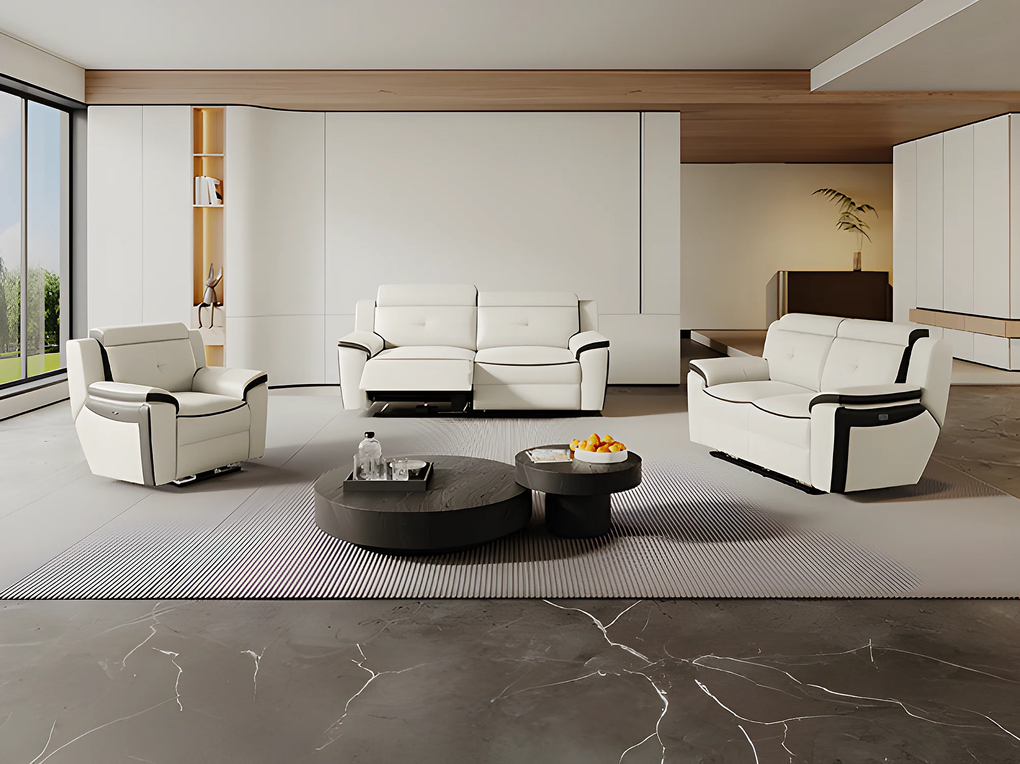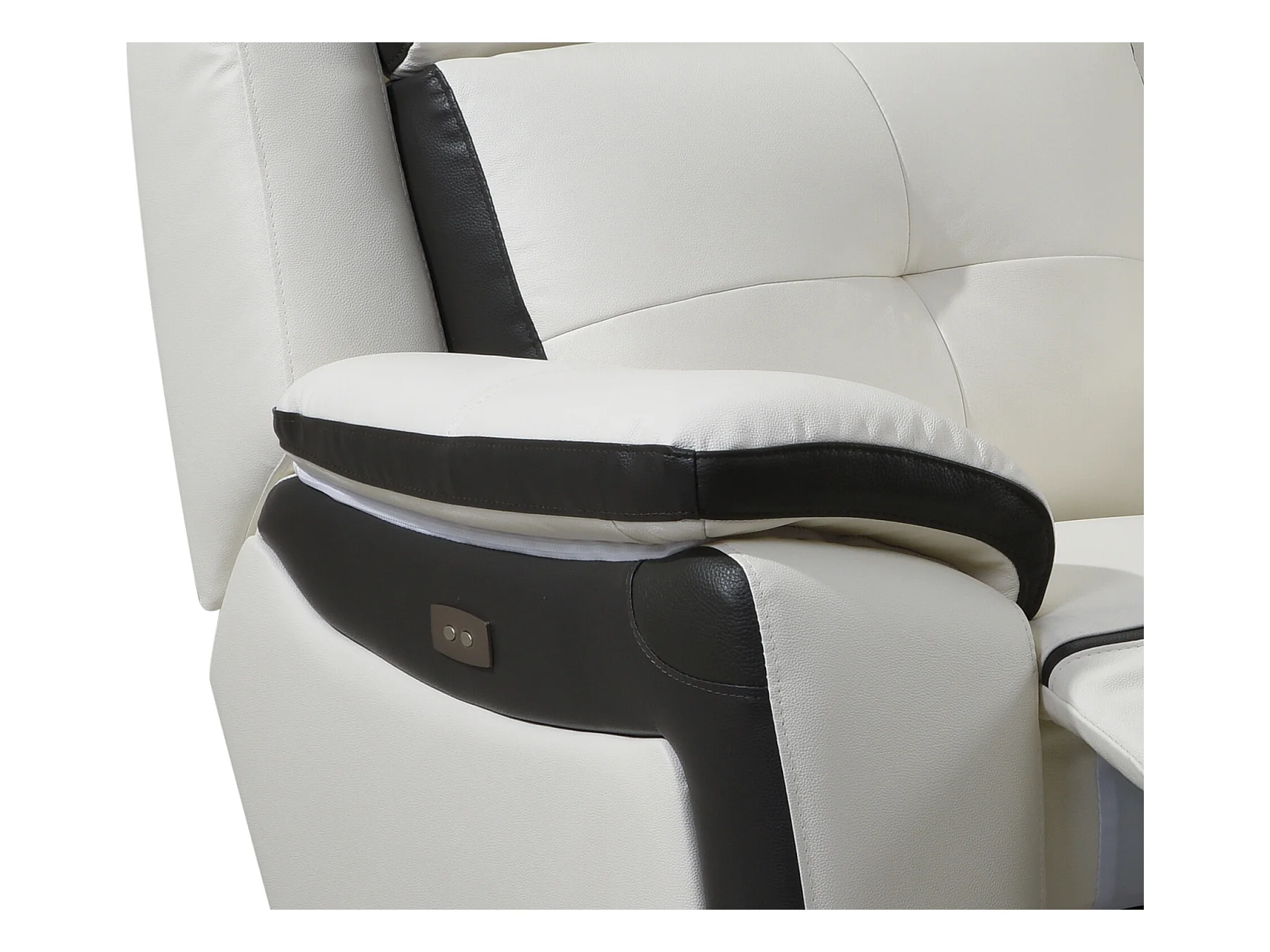 Canapé 3 places relax électrique en cuir ANGELIQUE - Blanc/anthracite