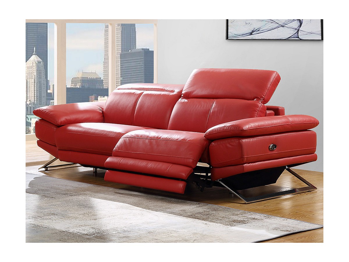 Canapé 3 places relax électrique en cuir PUNO - Rouge