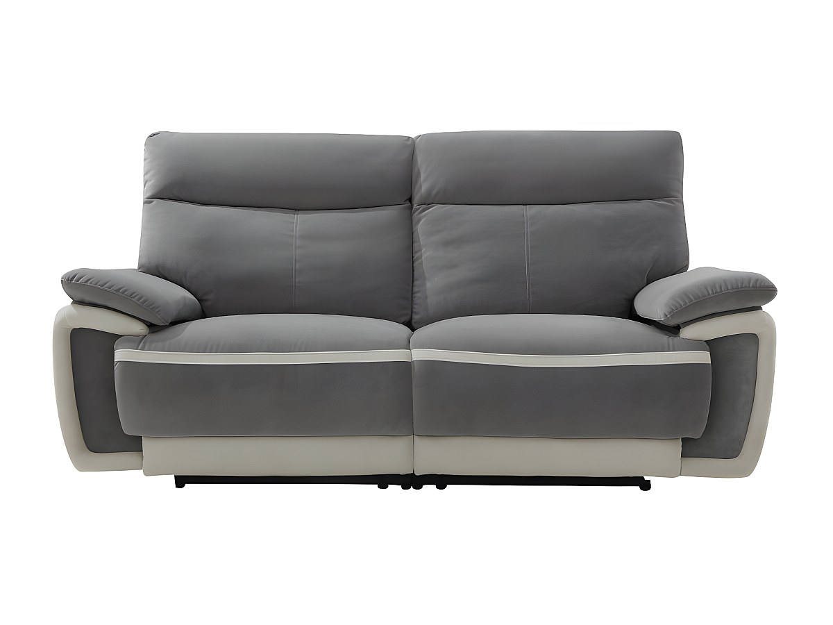 Canapé 3 places relax électrique en velours METTI - Gris et bandes écru