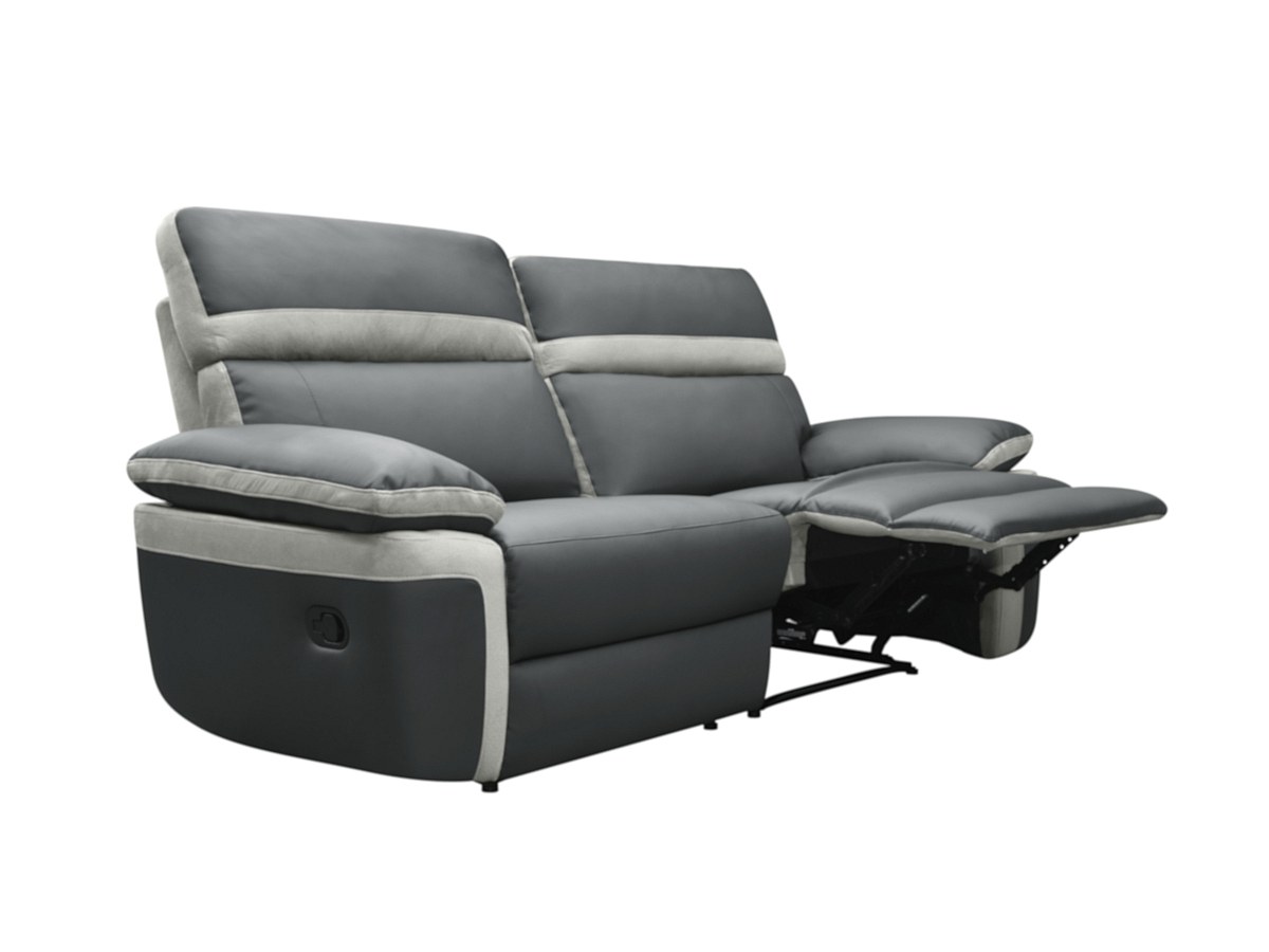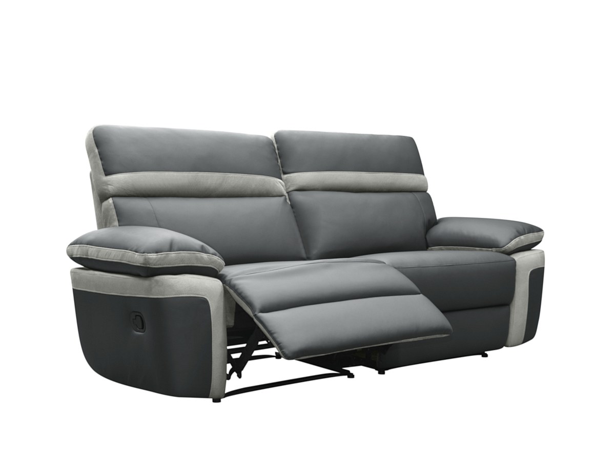 Canapé 3 places relax en simili et microfibre MERCUTIO - Anthracite et bandes gris claires
